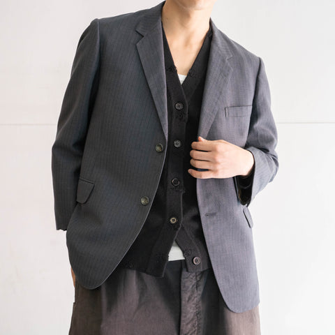 1980s Japan vintage light brown check tweed tailored jacket -with coin pocket-