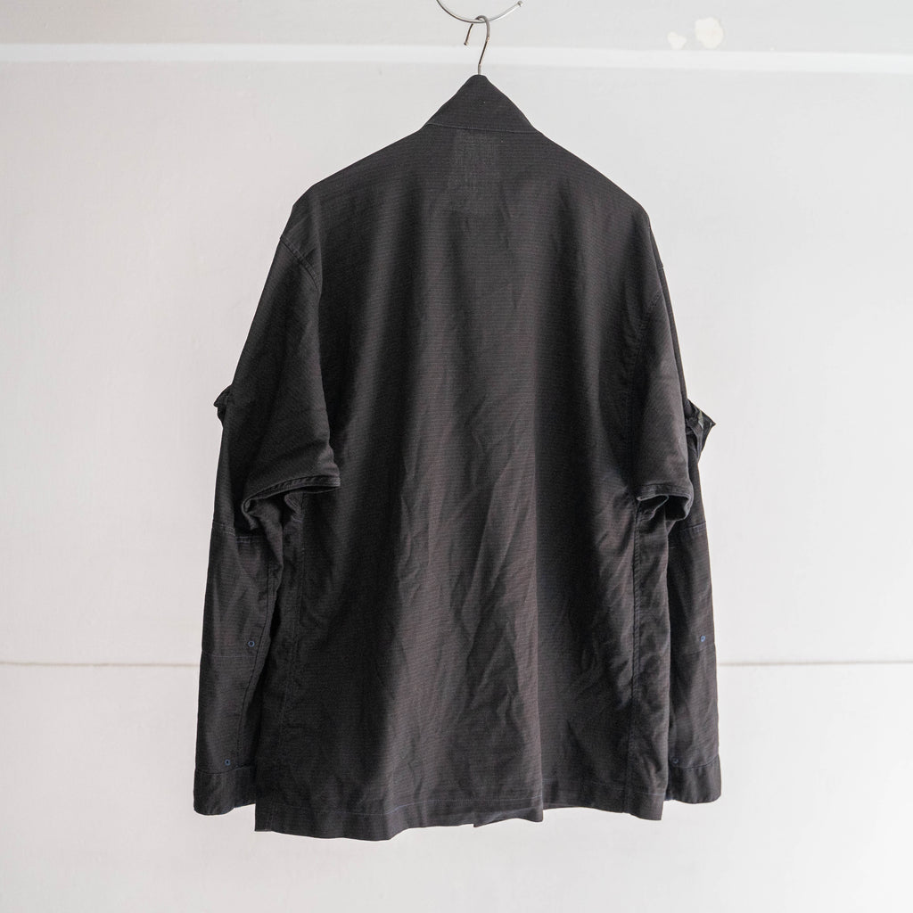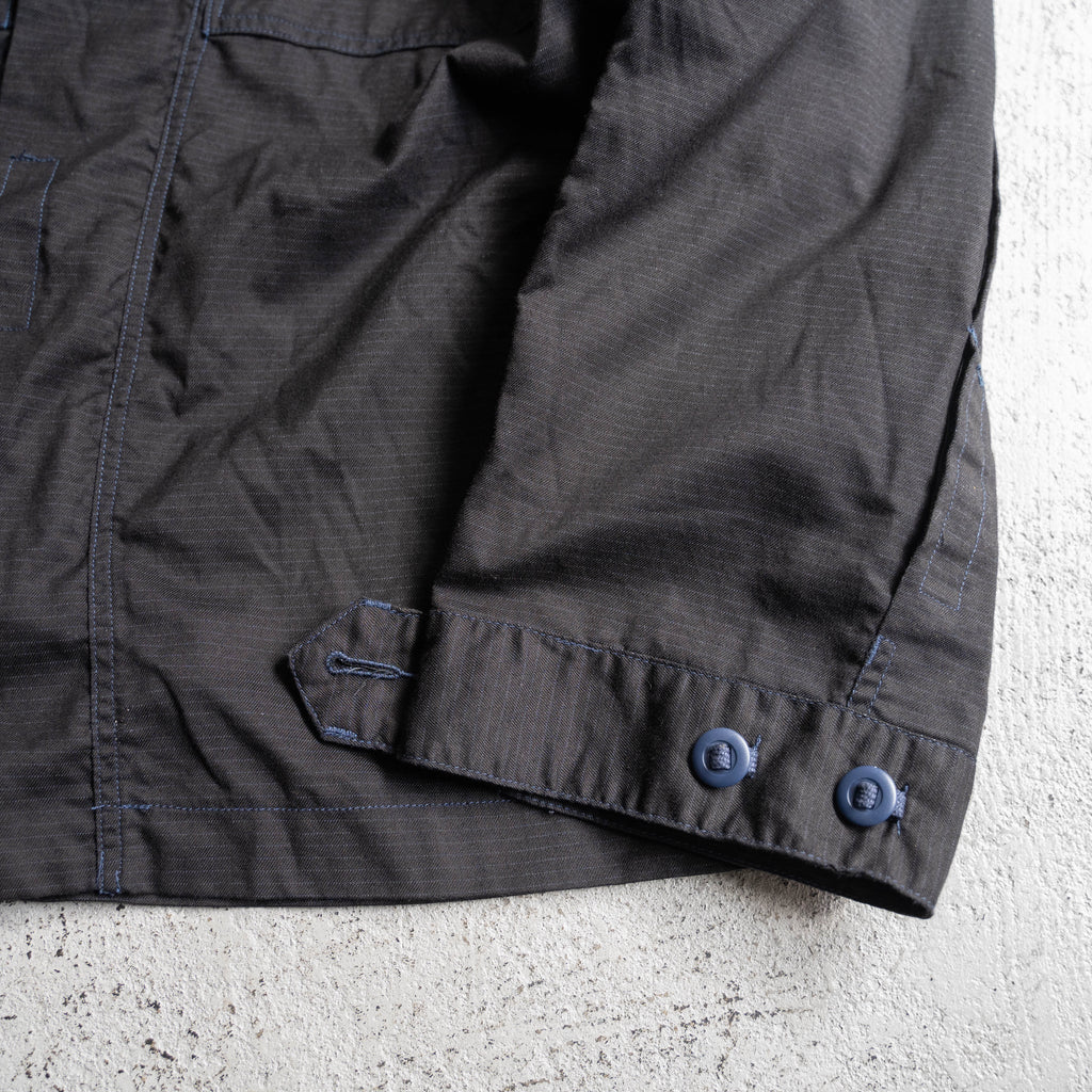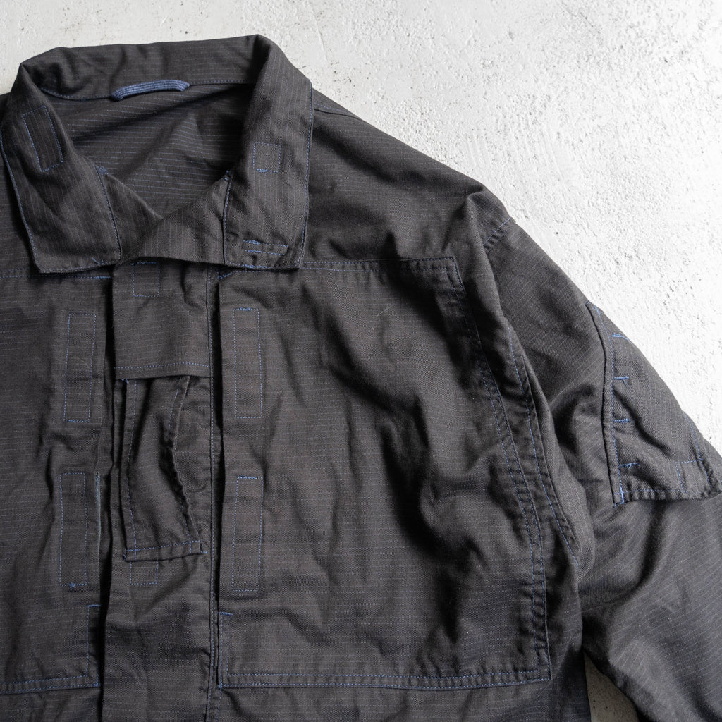 オリジナルはネイビーカラーなのですが、染めたことにより、ブラックカラーとギミックのバランスも込みでなんともモードな印象に。