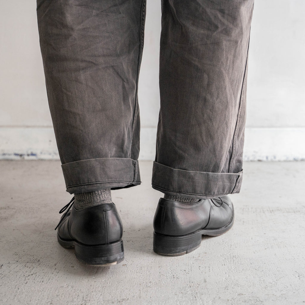 当店でも度々入荷するイタリア軍のレザーシューズに比べて少し横幅もありどこかルックスもぼてっと丸くなるのでサイズが合わなかった方や少しカジュアルに履きたい方にもオススメです。