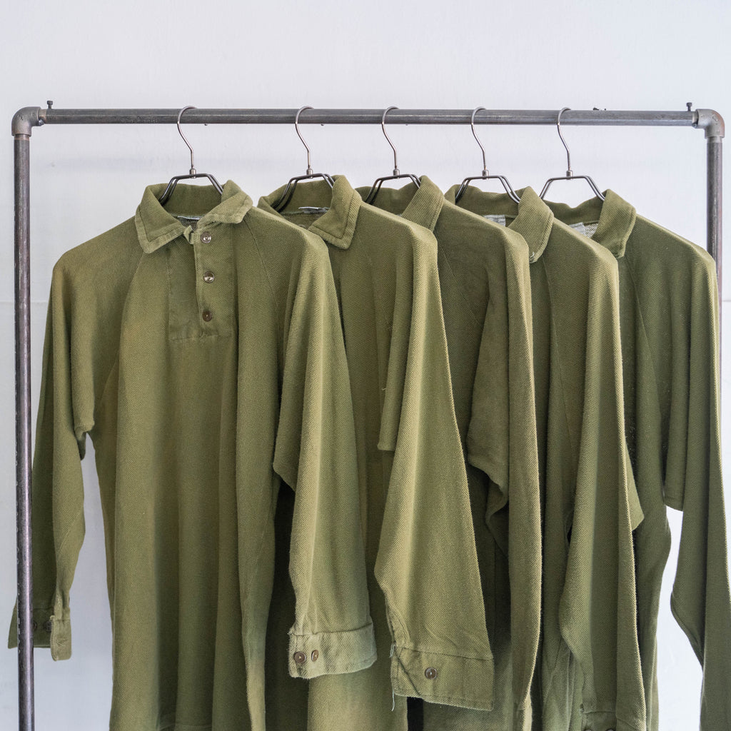インナーとして着用することの多い印象のサーマルですが、こちらは襟付きのヘンリーネックと1枚でもしっかりサマになるルックス。