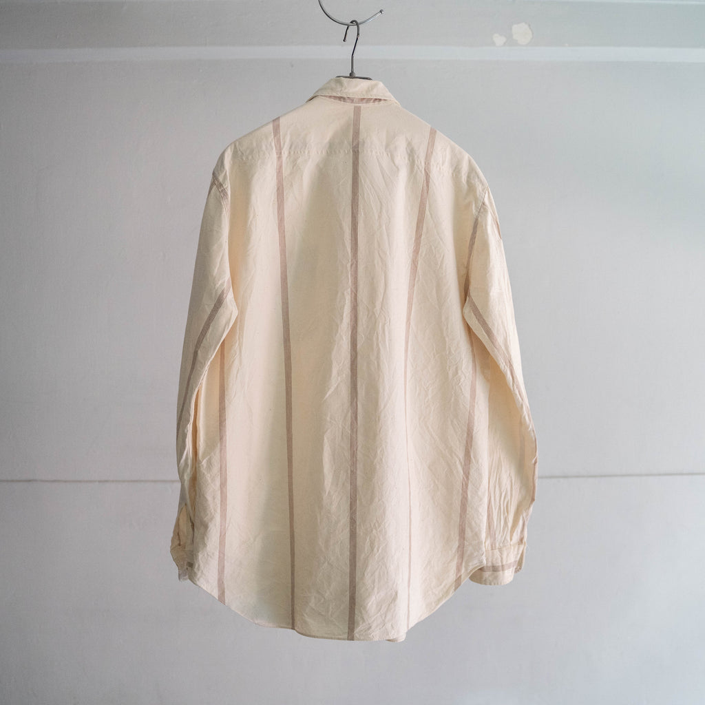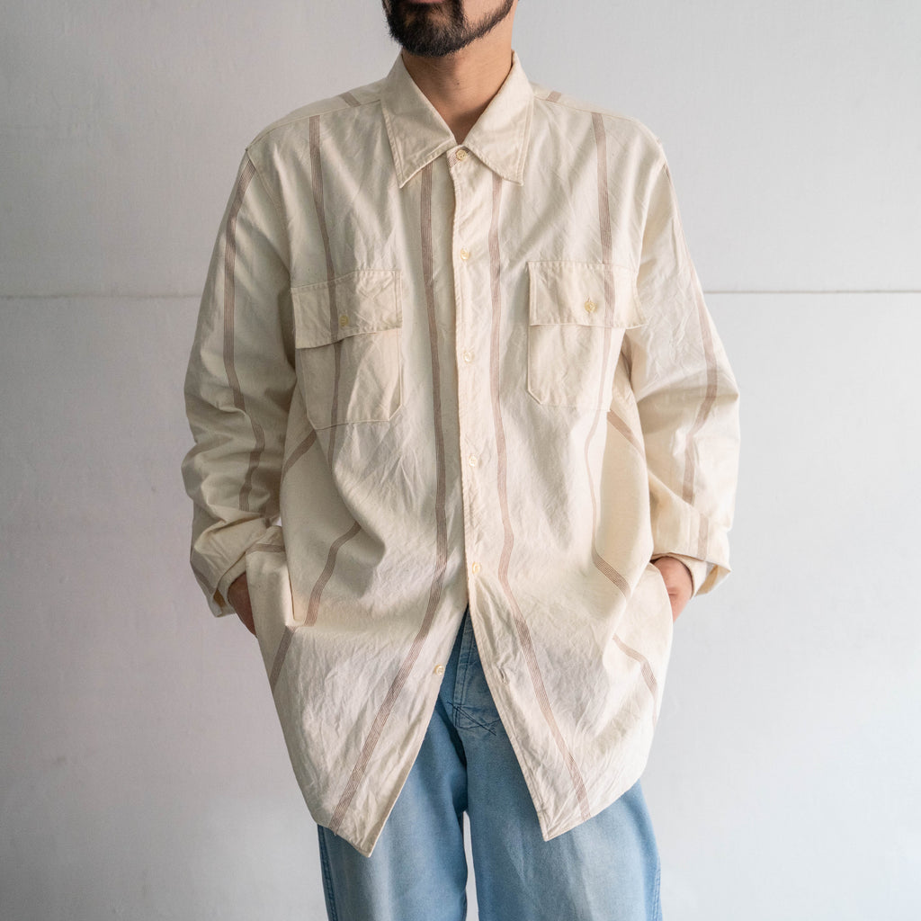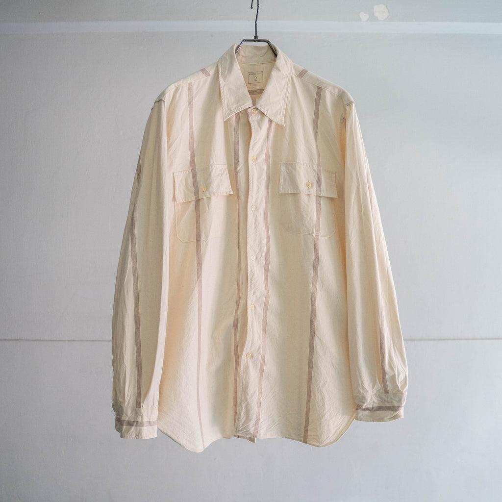 一般的にストライプシャツと言うと爽やかな印象がありますが、こちらは軍モノらしくやや無骨な印象にも見えます。