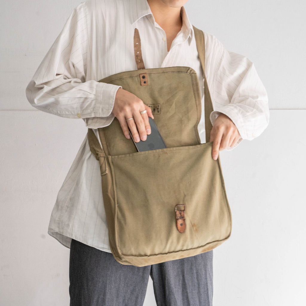 1940-50s Bulgarian military cotton shoulder bag 'beige & green'