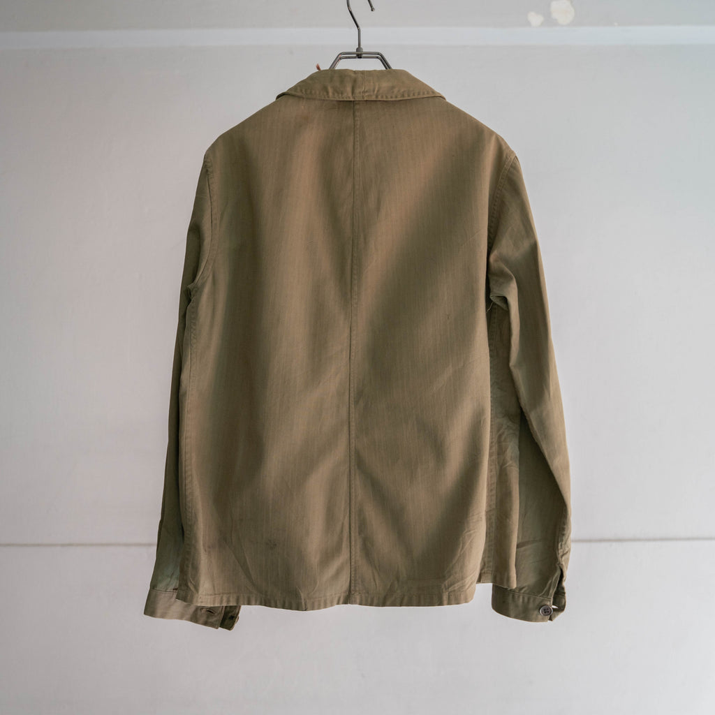 形はベーシックなユーロのワークジャケットなのですが、、こちらアメリカ軍のオールドファブリックを使用して作られています。