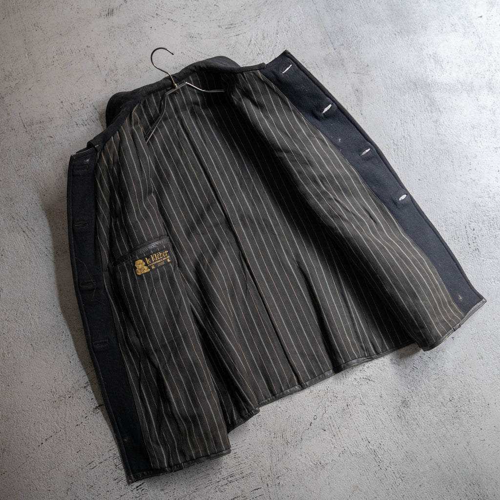 ブラックのウール襟にブラックストライプのライニング。