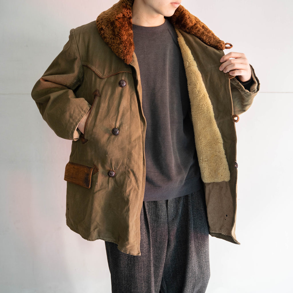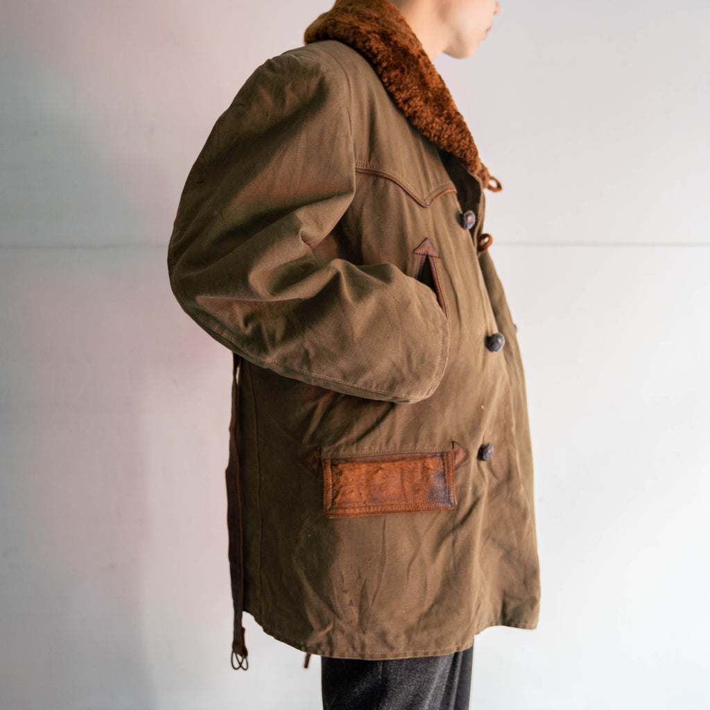 1940s France olive canadian coat -leather switching-