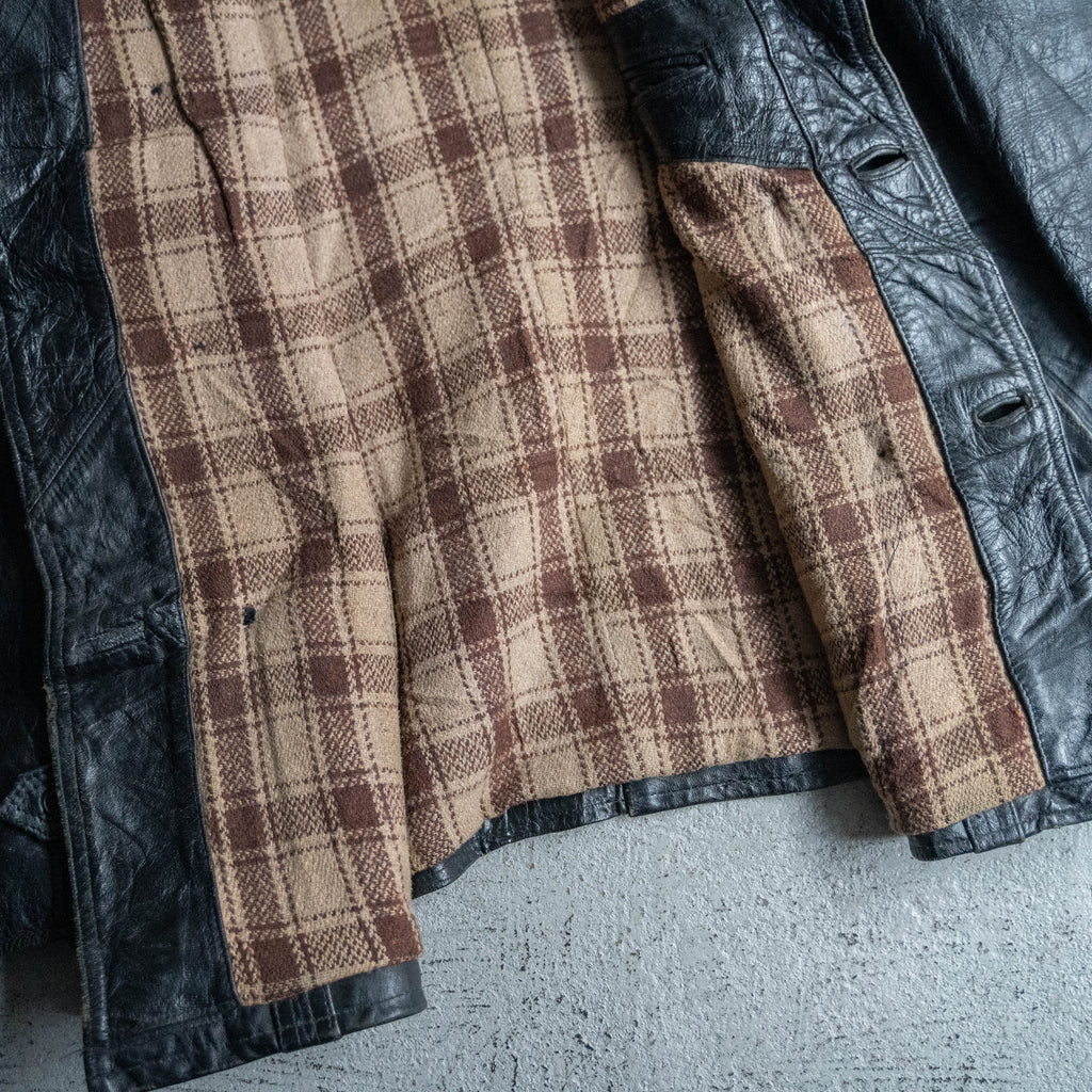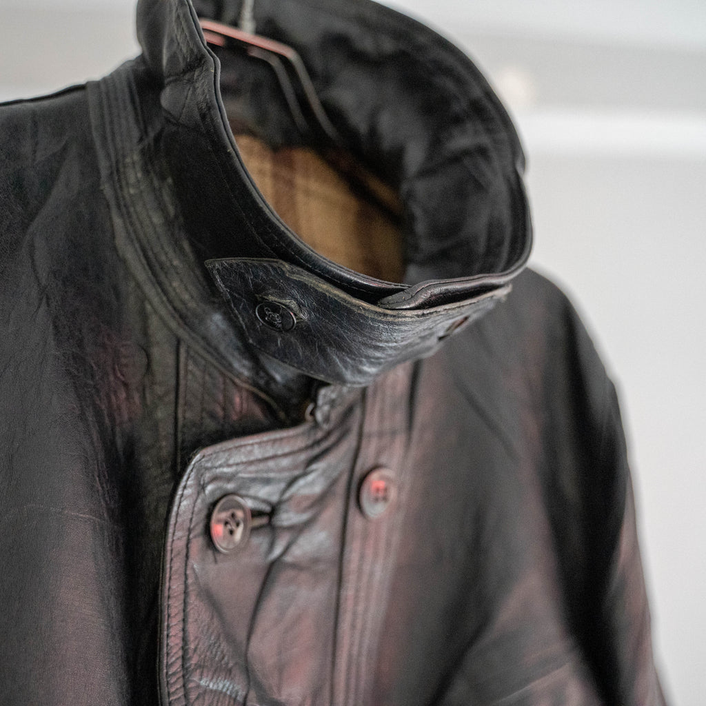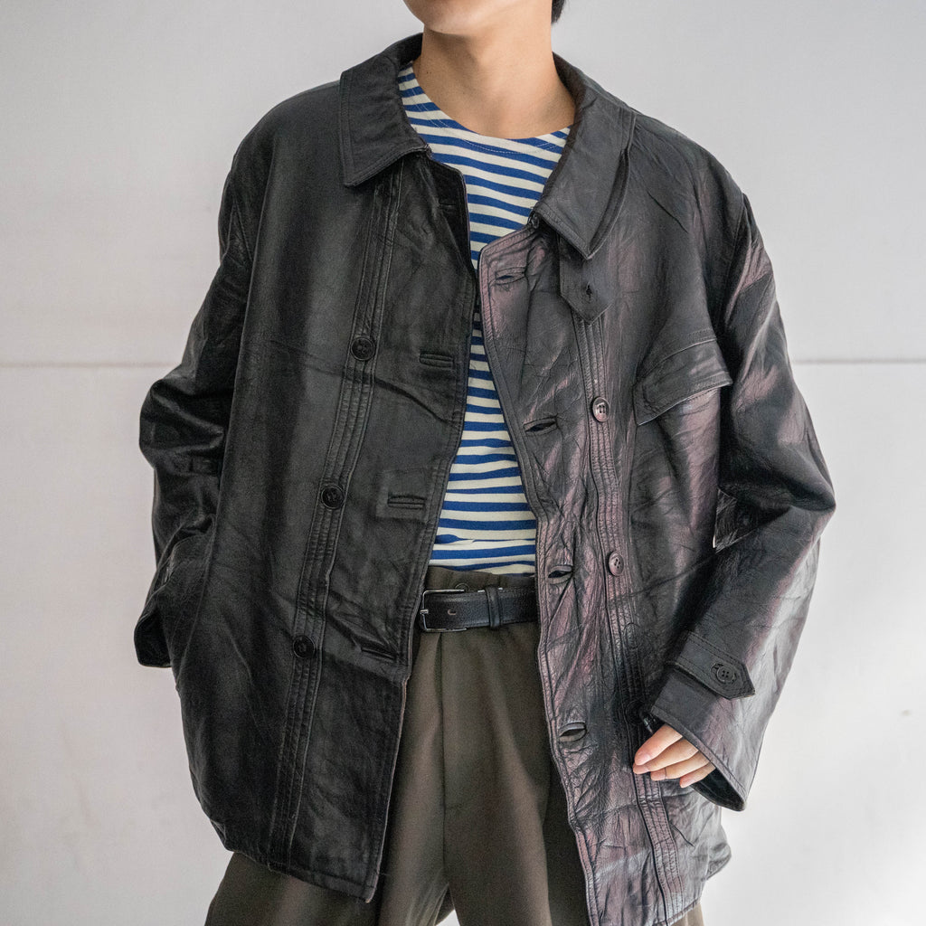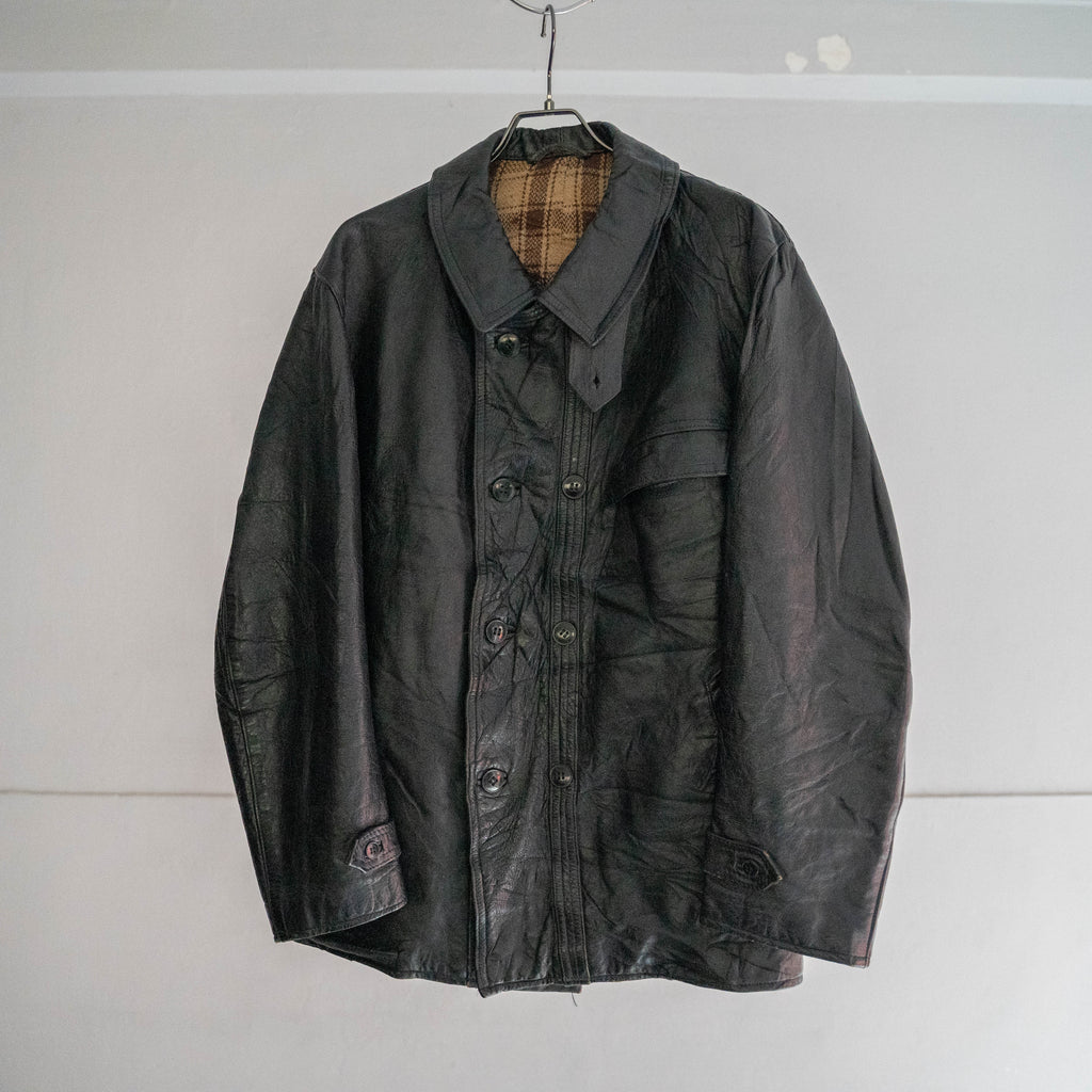 1960-70s France double breasted black leather "corbusier jacket" -chin strap- -2
