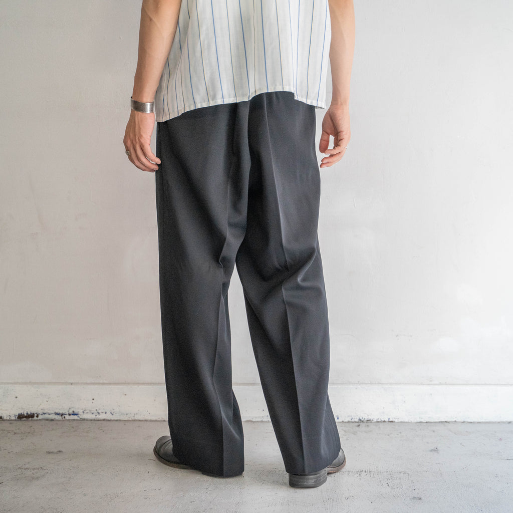 1960-70s Japan vintage black wool no tuck wide dress slacks