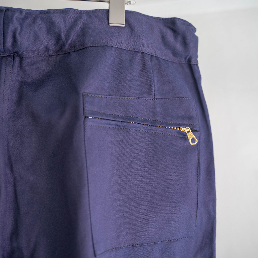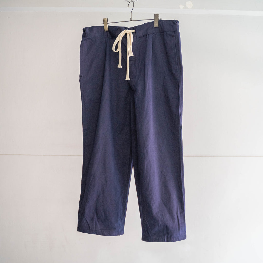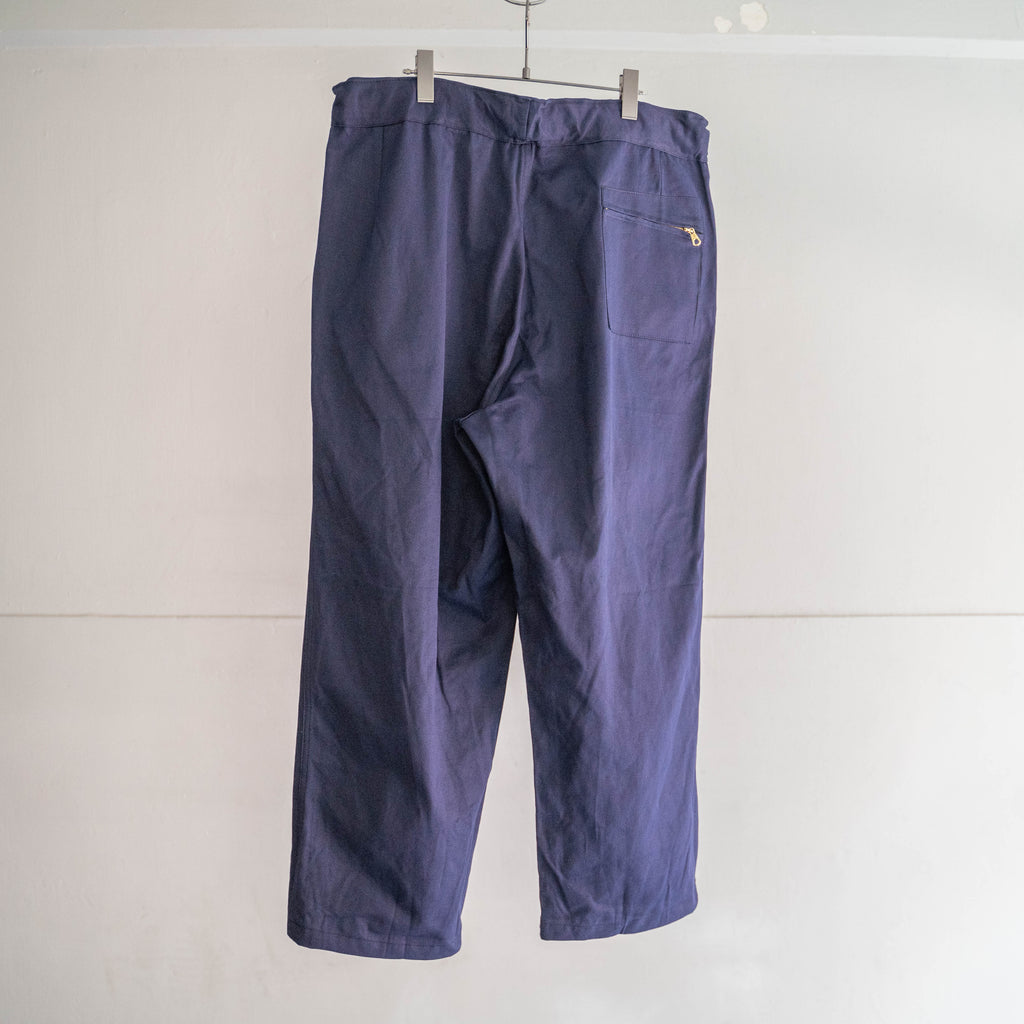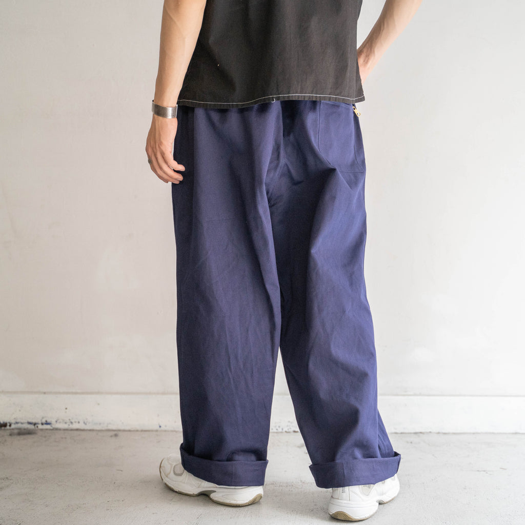 1970-80s Italian military navy color wide pants 'dead stock' -waist & hem remake-