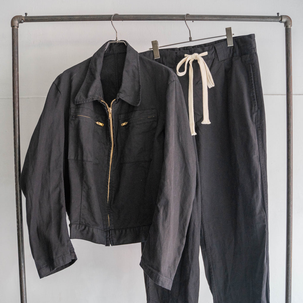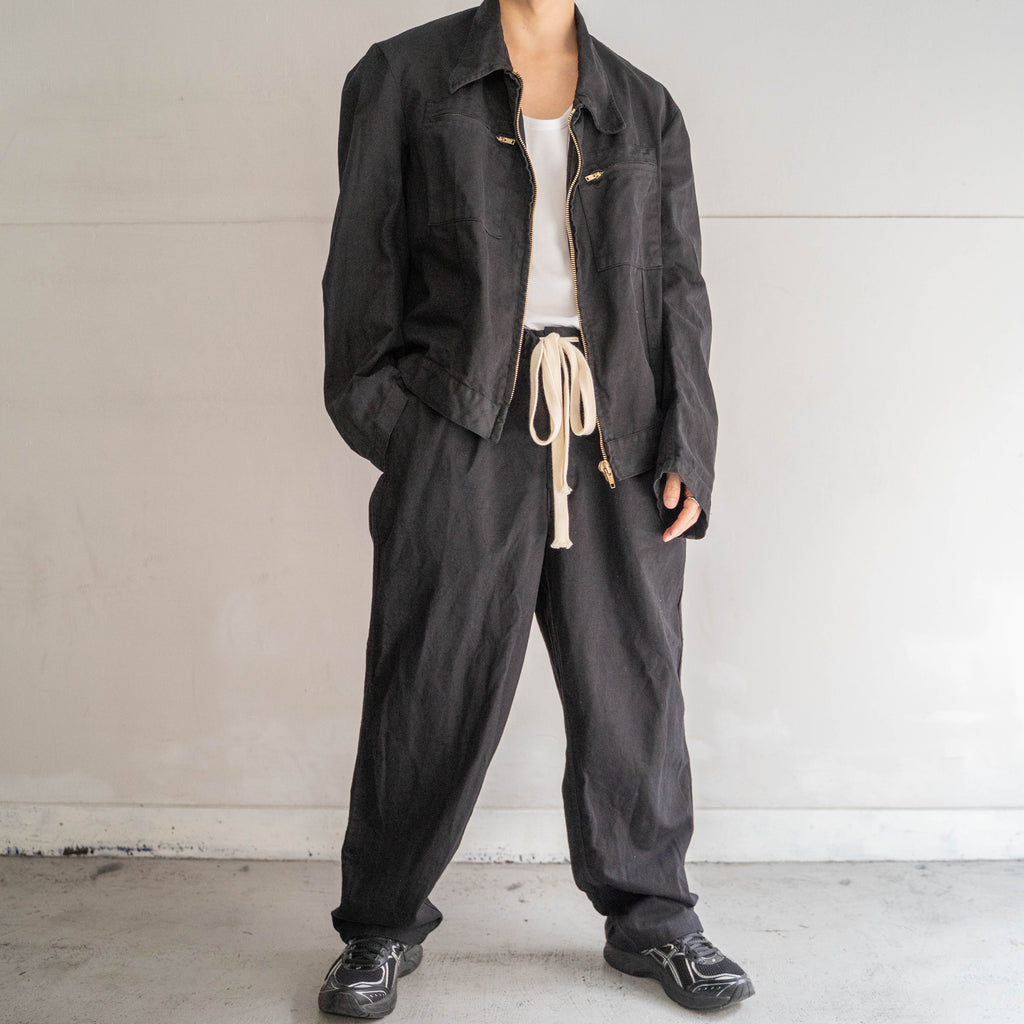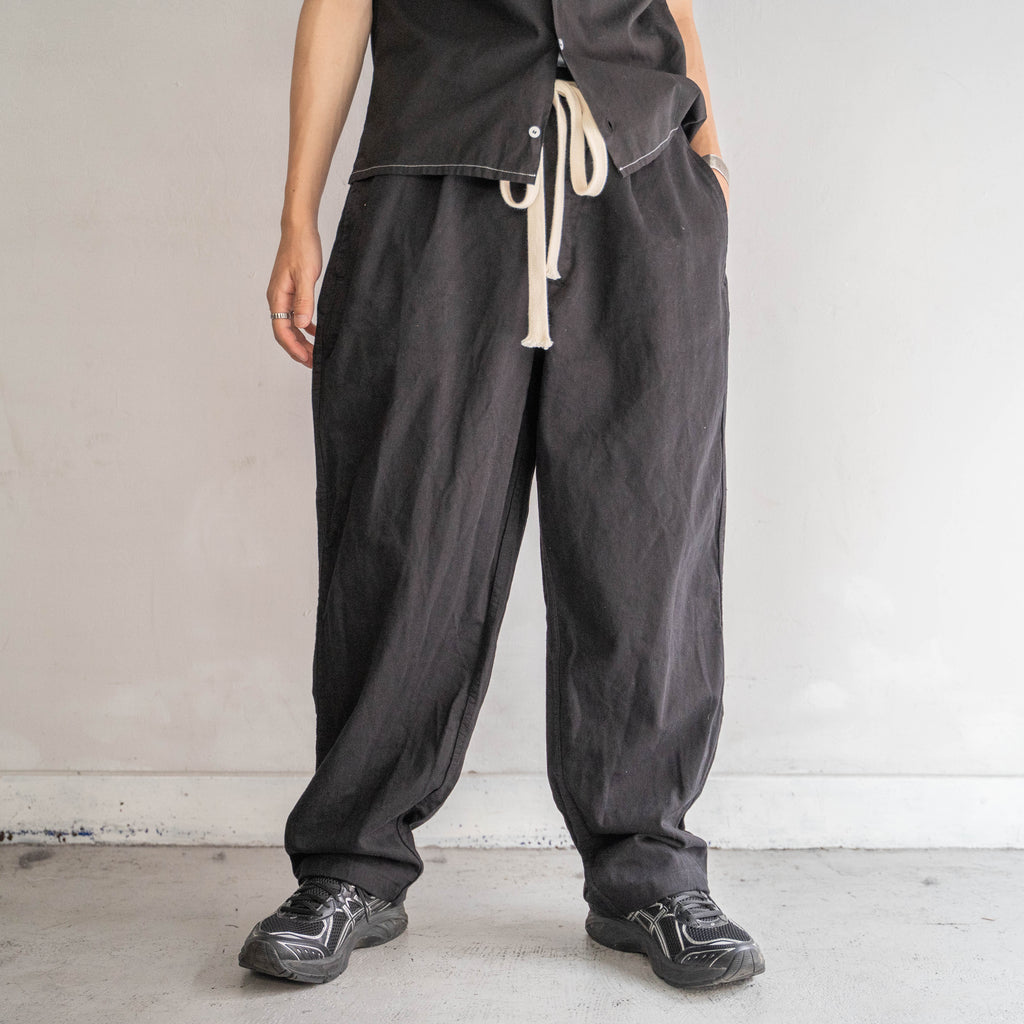 1970-80s Italian military wide pants 'dead stock' -waist & hem remake- "black dyed"