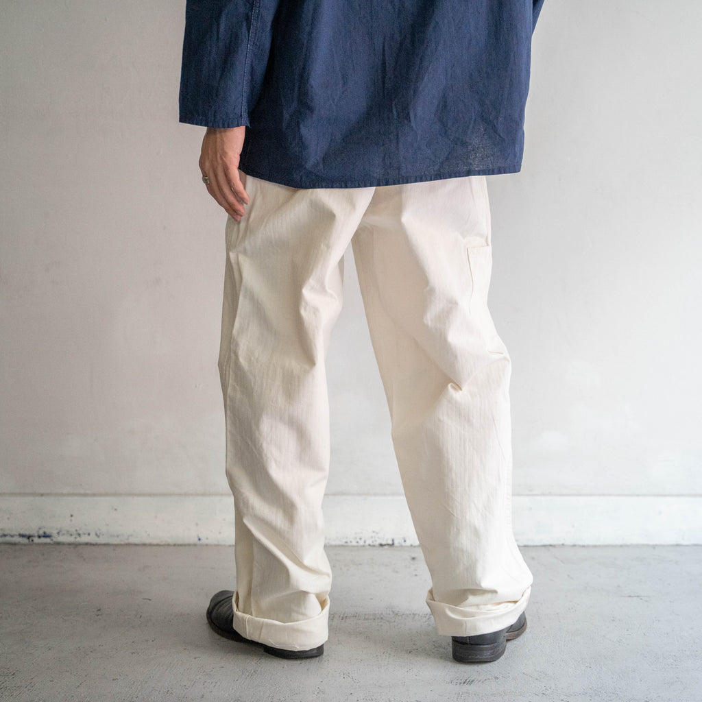1970s Germany white herringbone work pants -with cinch back- "dead stock"