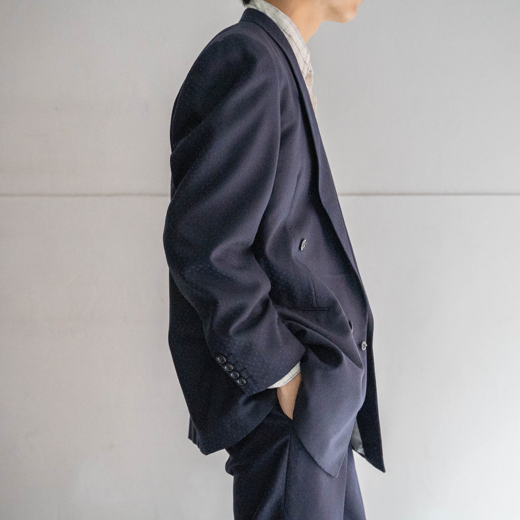 1970s Japan vintage navy all over pattern double breasted set up