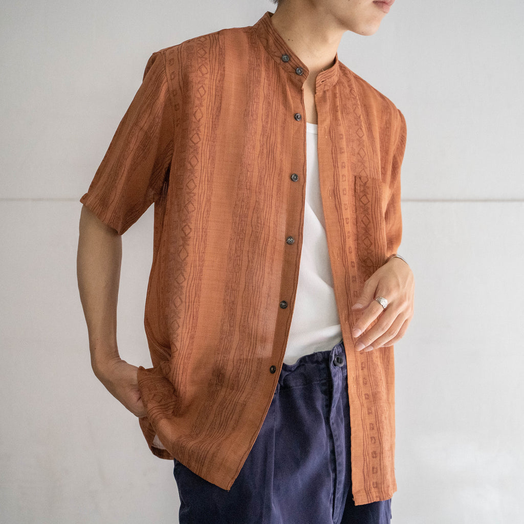 1980-90s Japan vintage brown ethnic-like no collar shirt
