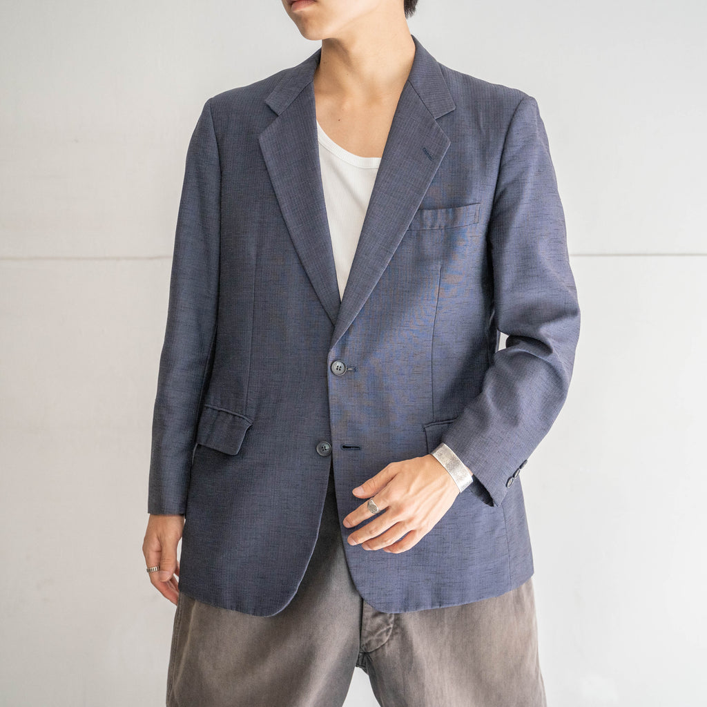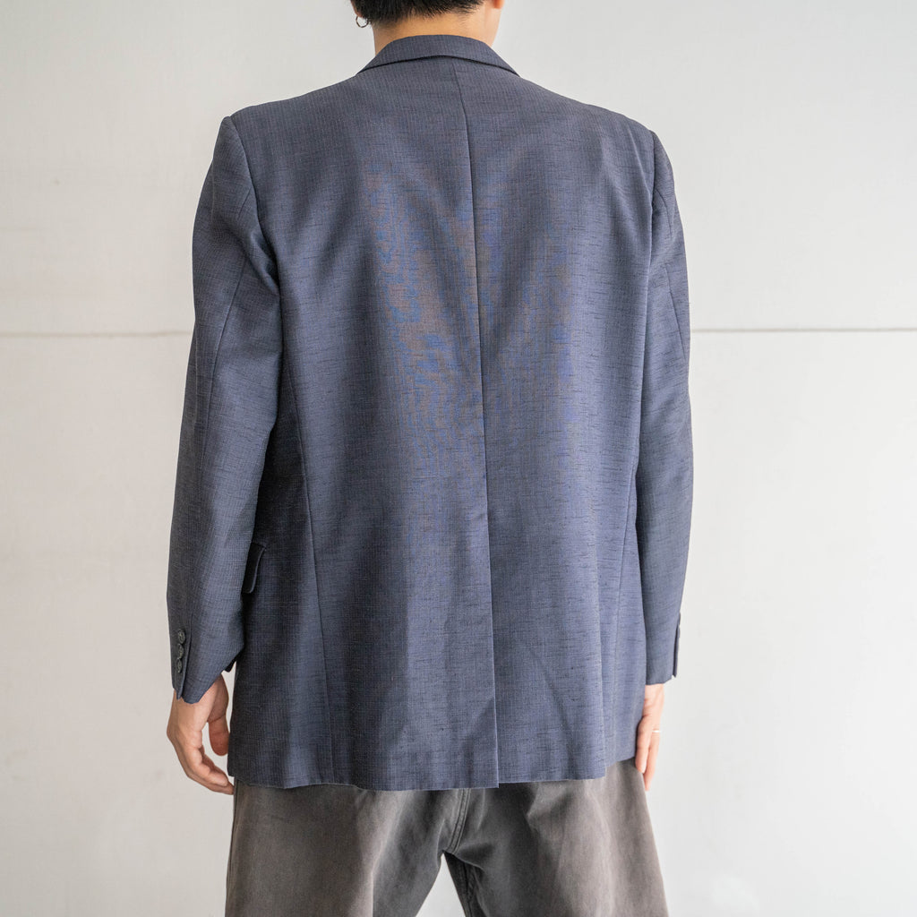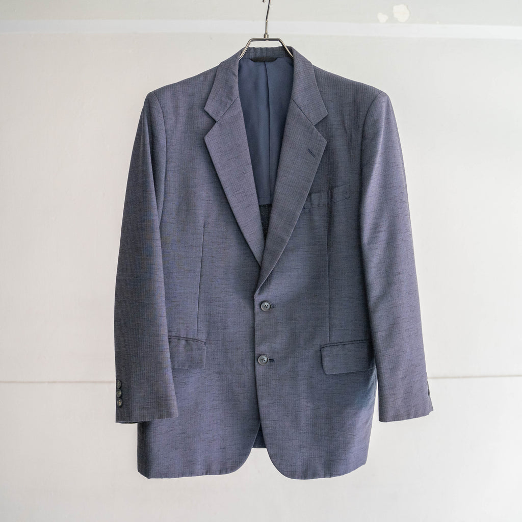 1980-90s Japan vintage navy kasuri pattern poly × wool tailored jacket