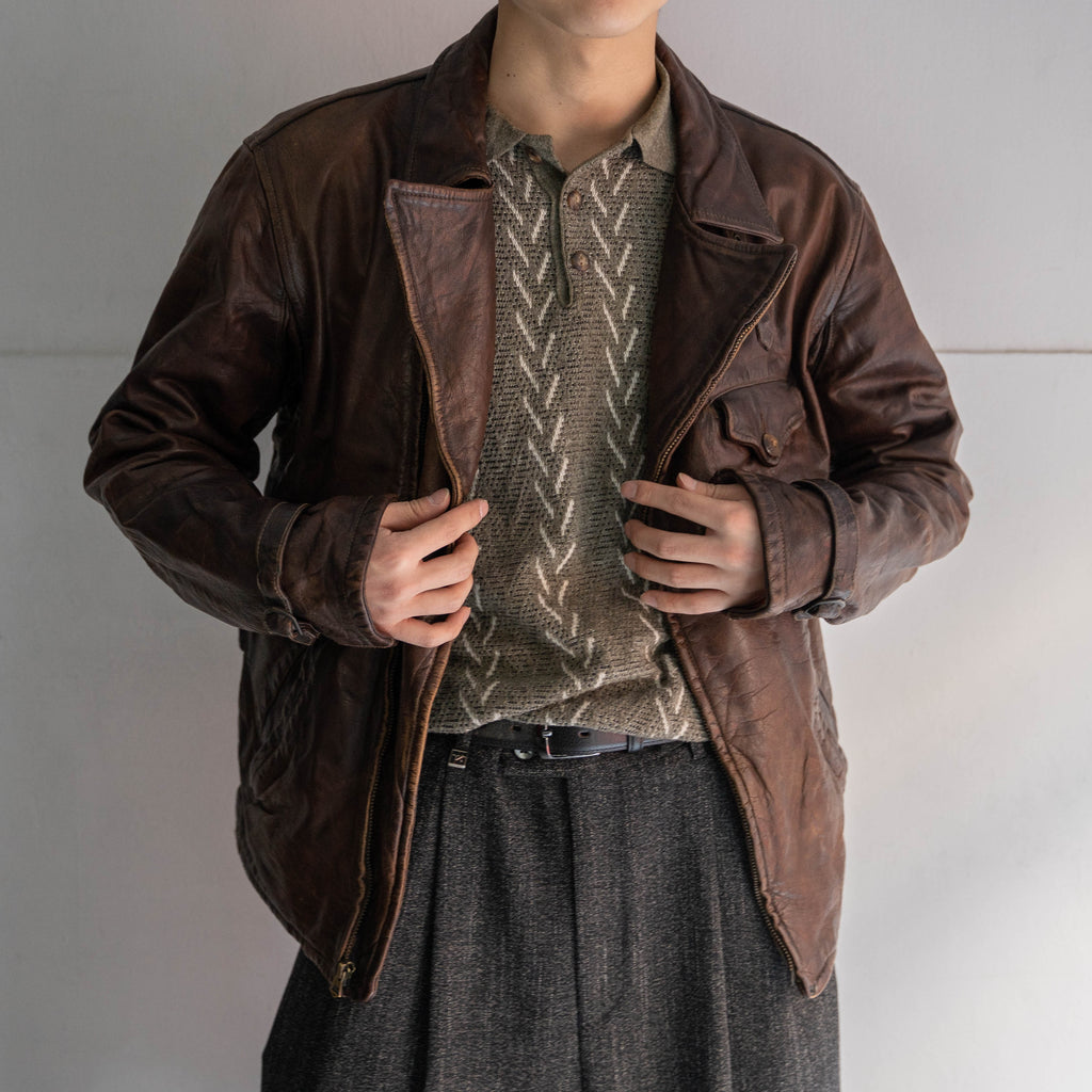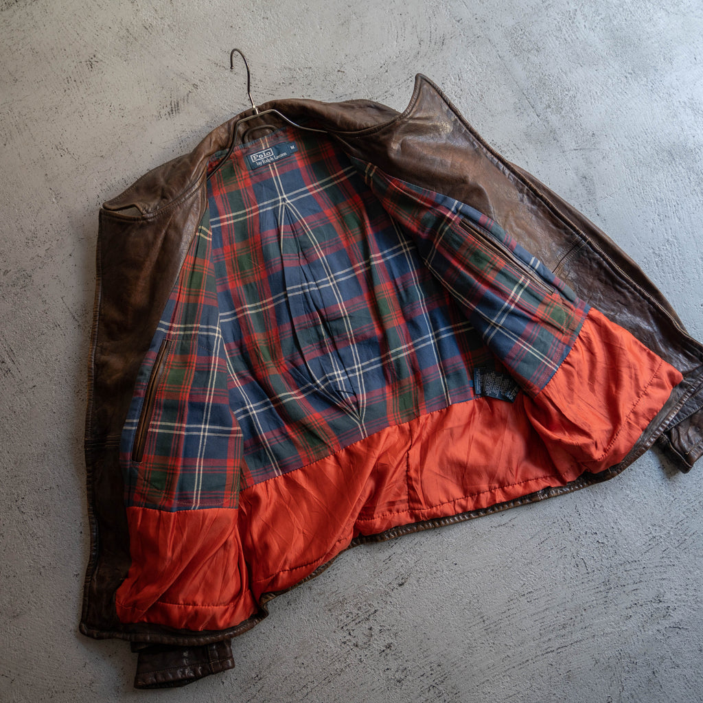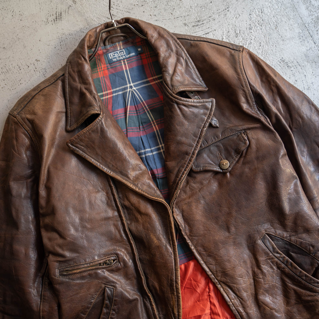 1980-90s Ralph Lauren brown leather motorcycle jacket