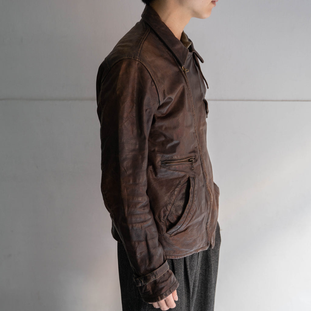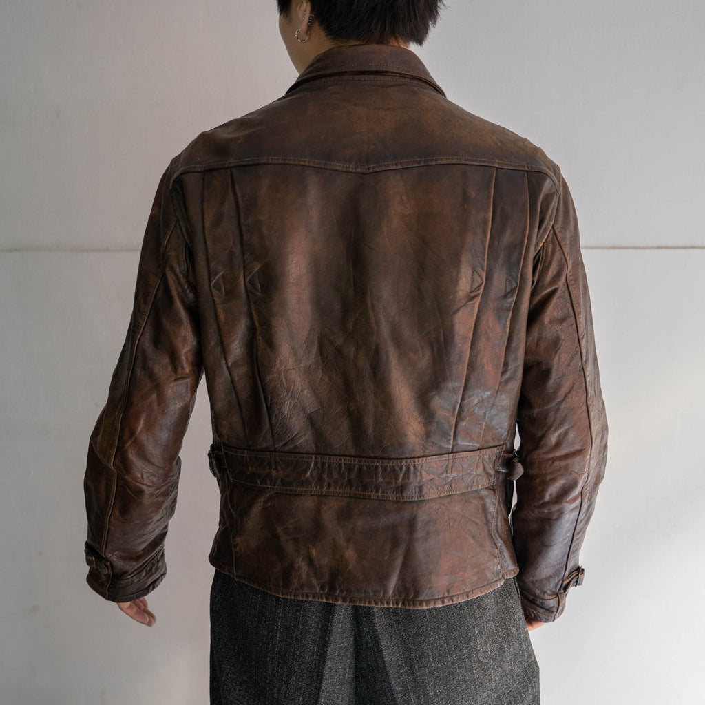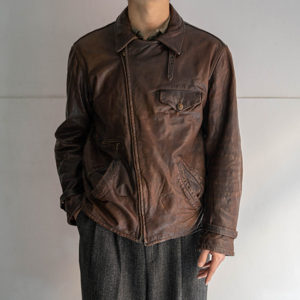 1980-90s Ralph Lauren brown leather motorcycle jacket