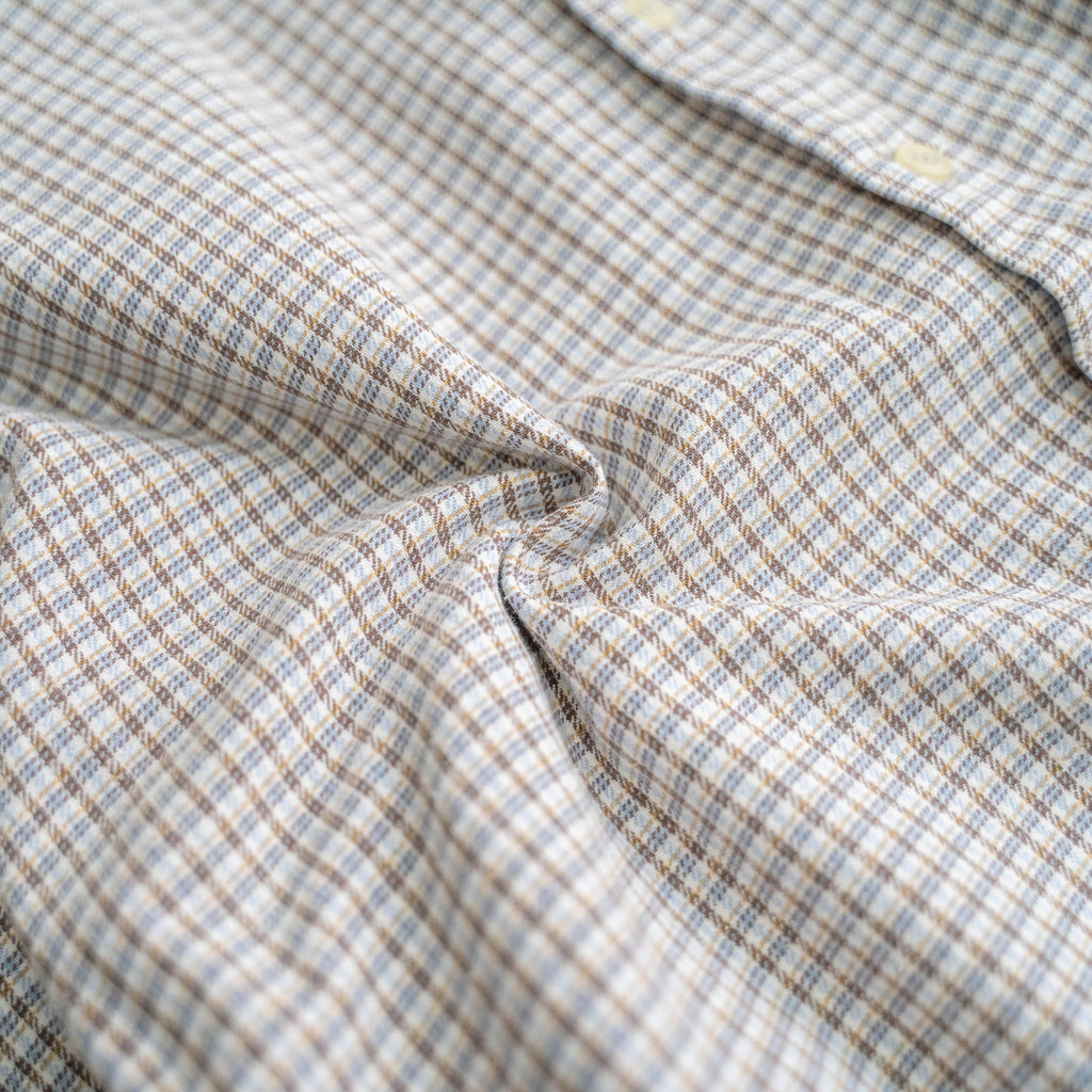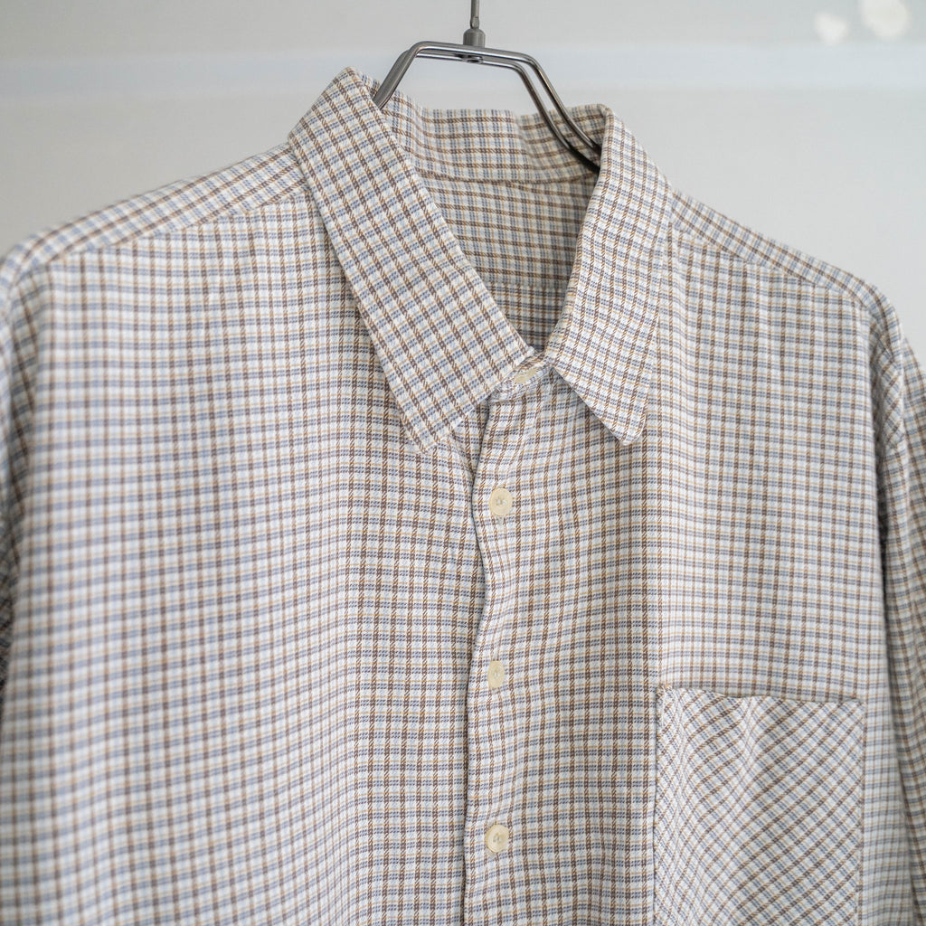 1980s Europe white based check grandpa shirt