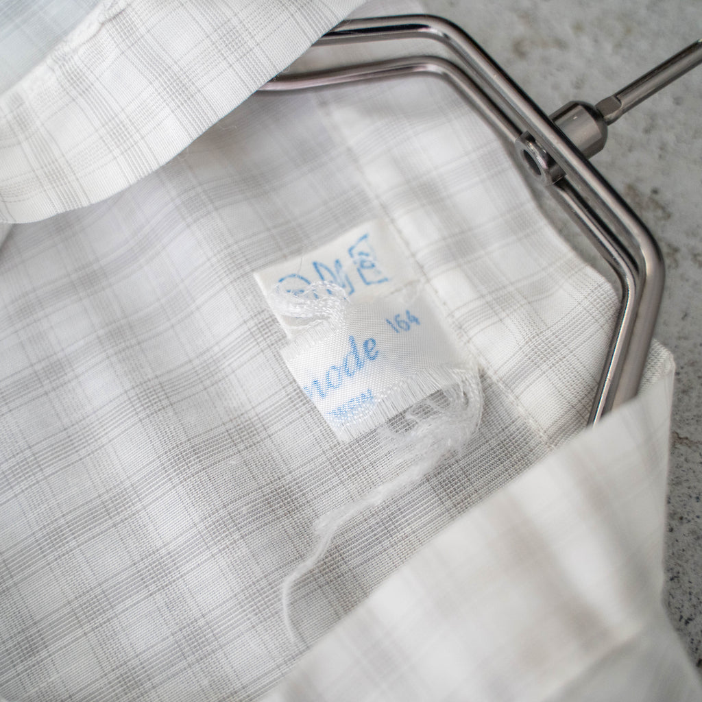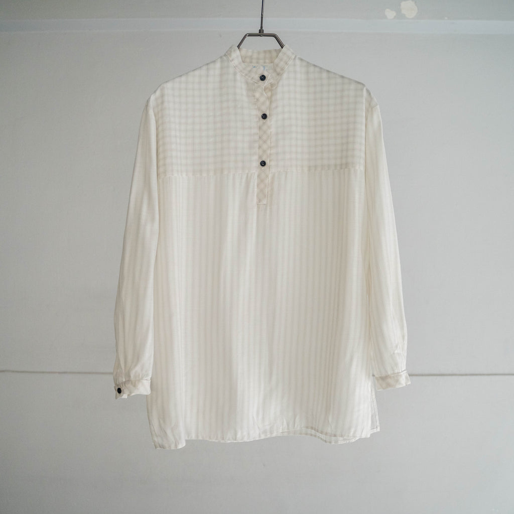 ホワイトカラーベースで、上半分がチェック、下半分と袖がストライプというおもしろデザイン。