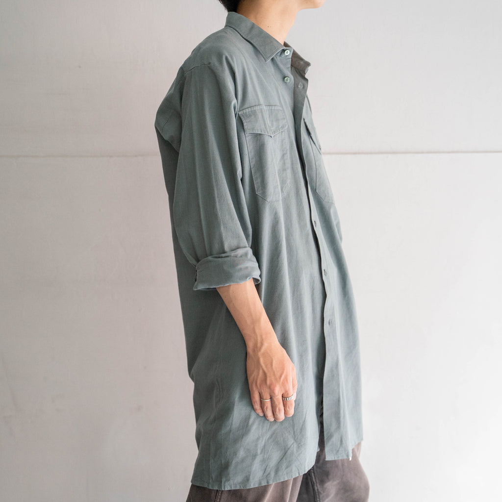1980s Germany pale color 2pockets cotton × poly long shirt