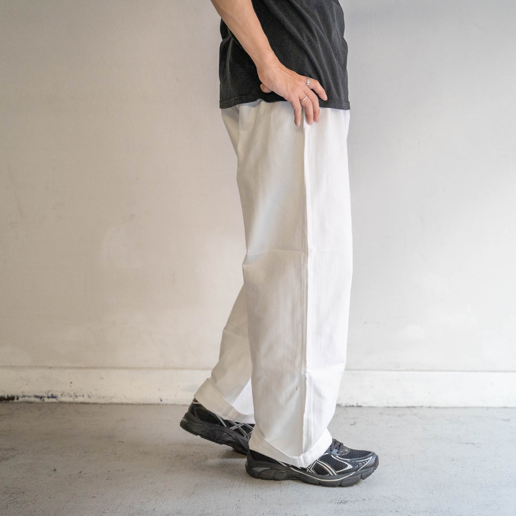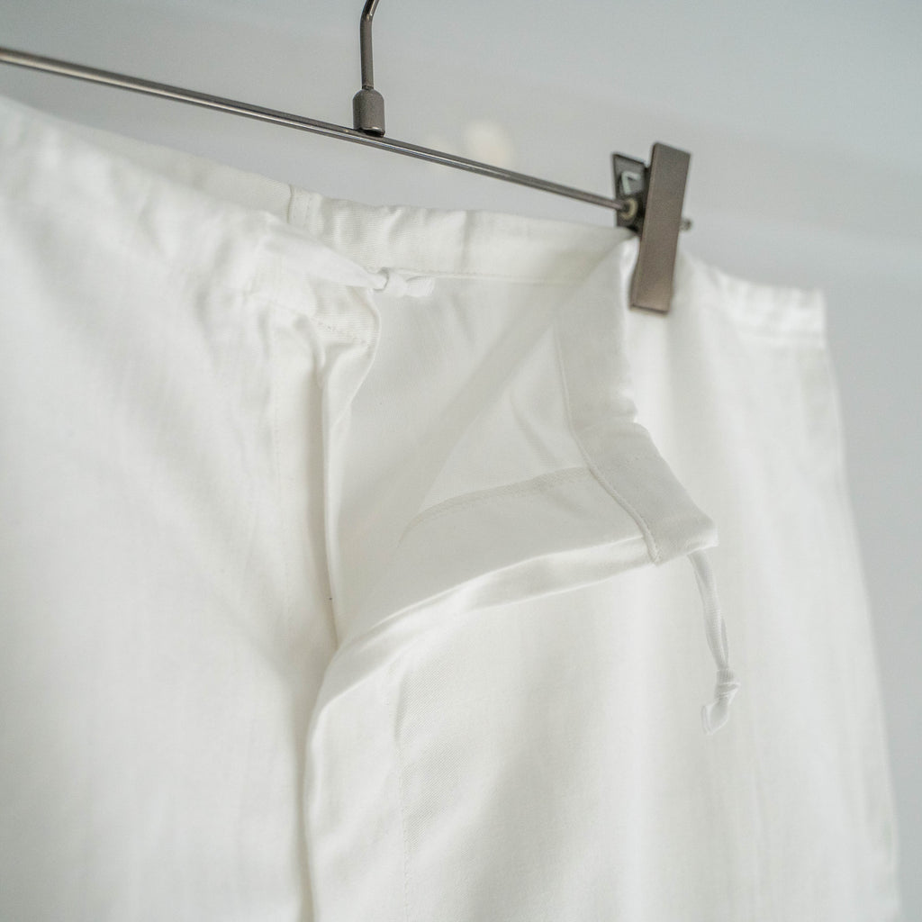 ウエストにドローコードがついており、ぎゅっと絞って履くイージーパンツスタイル。