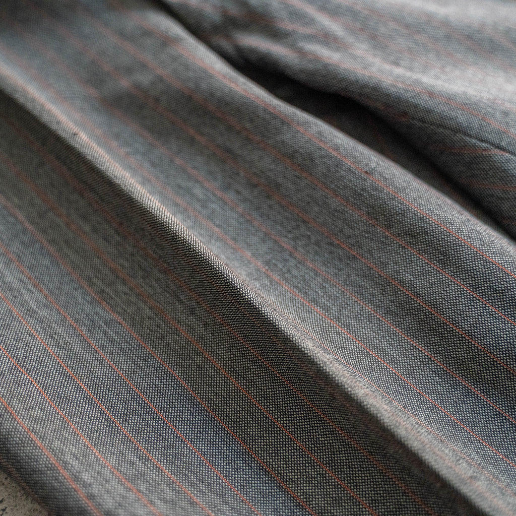 ブラックシャンブレーのようなベースカラーにオレンジのストライプが走る1本。