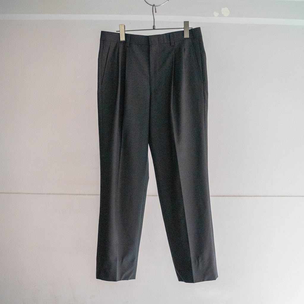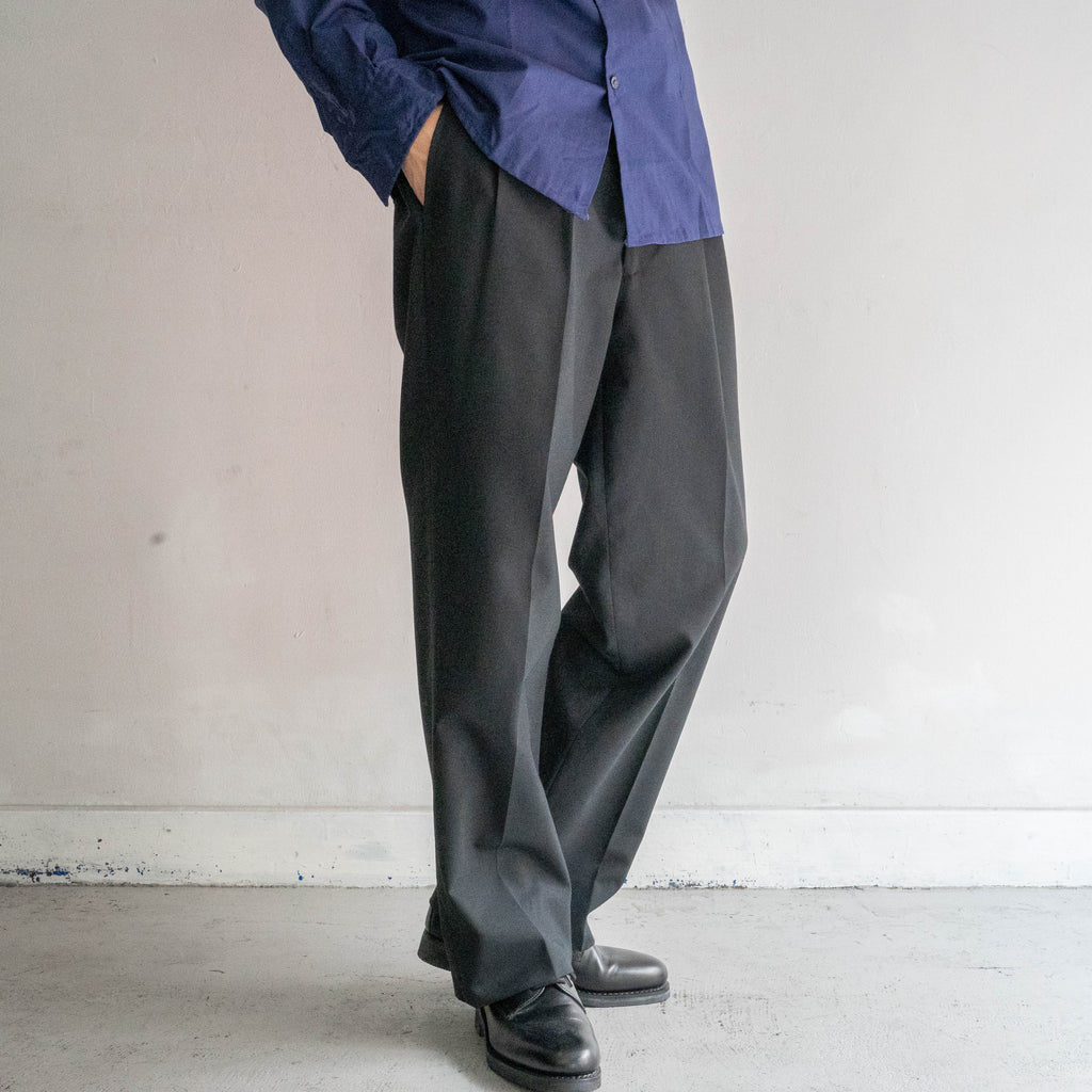 1990-00s Japan vintage black poly × wool 2 tuck slacks