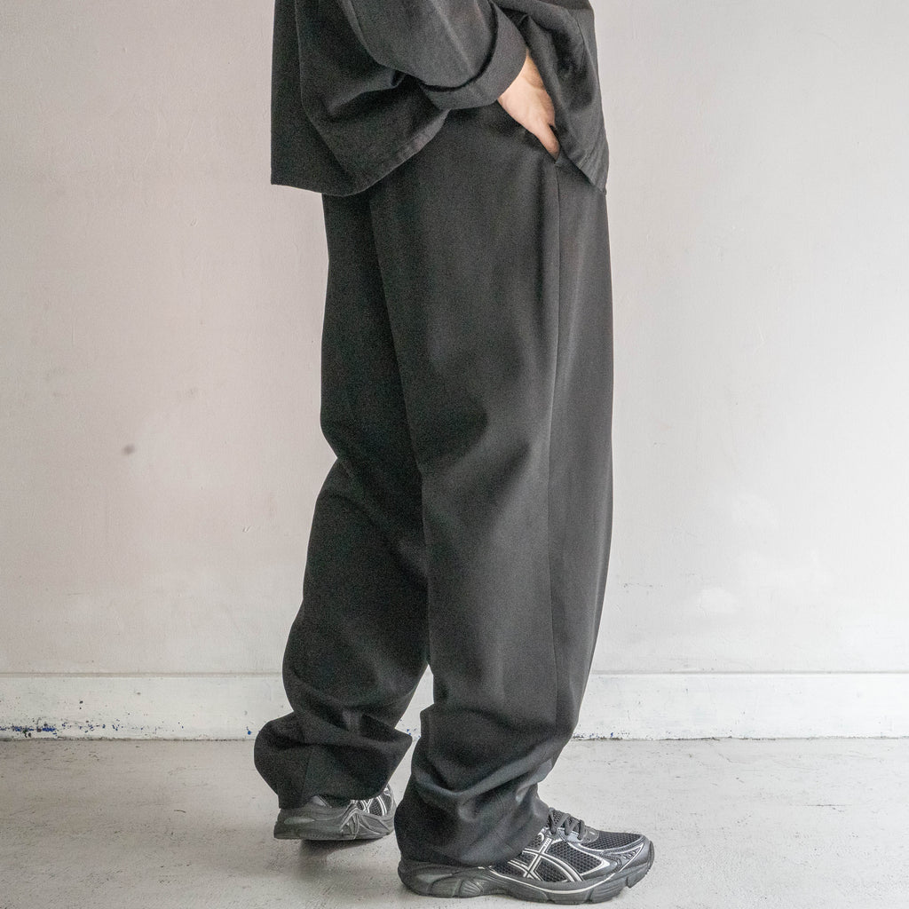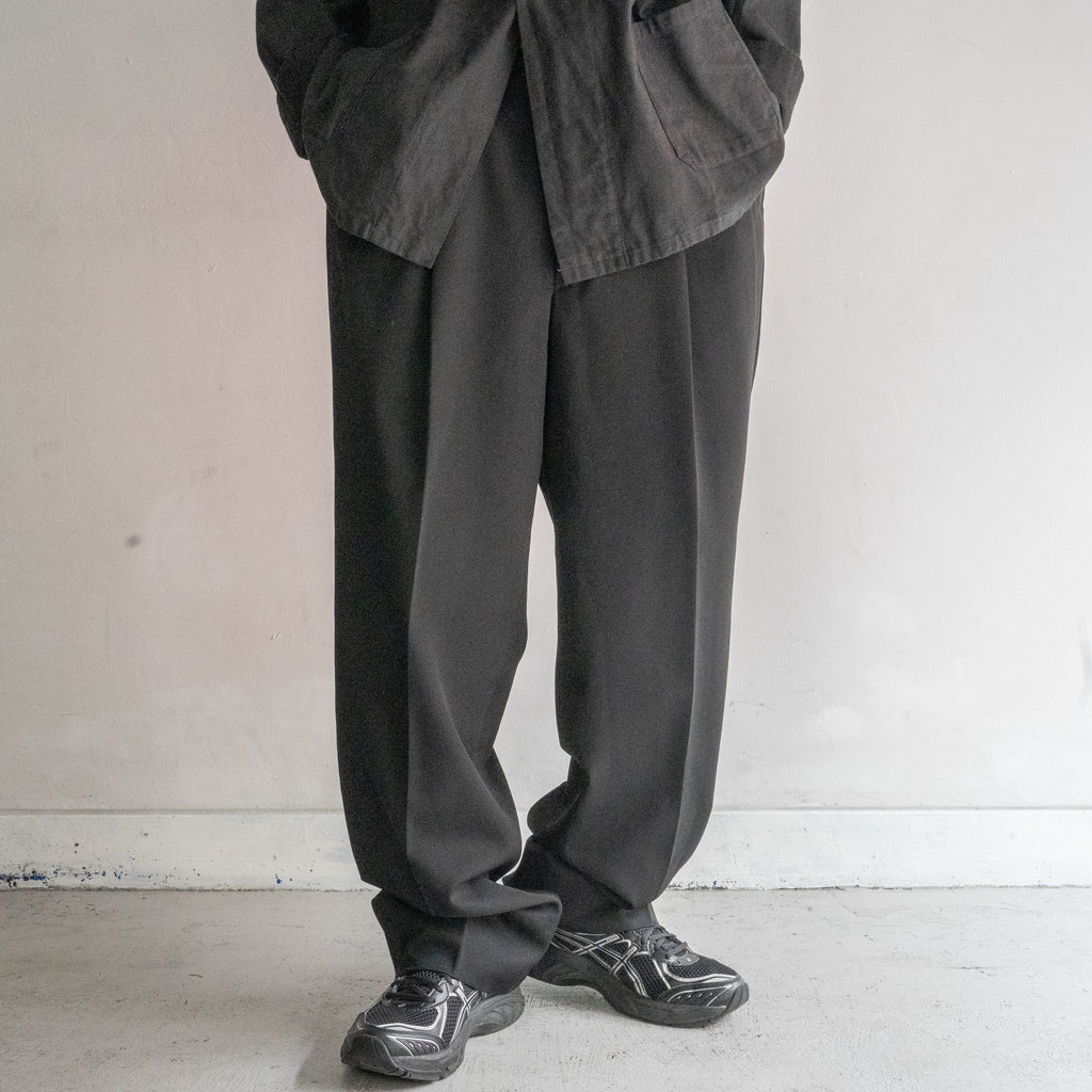 1990-00s Japan vintage black wide wool slacks with side adjuster