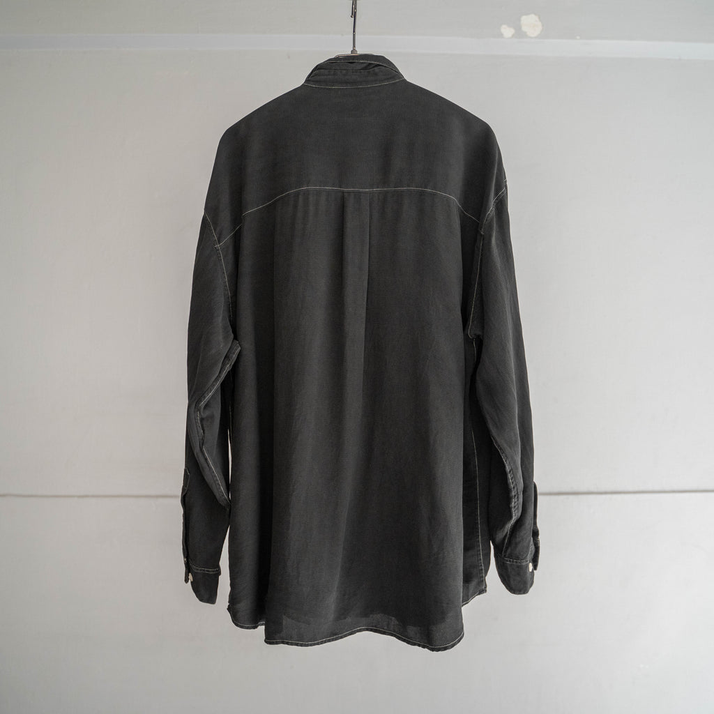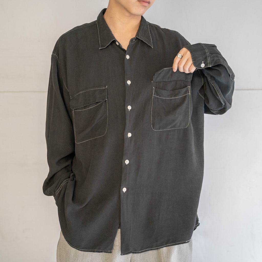 1990s 2 pockets silk 100 box shirt -black dyed-