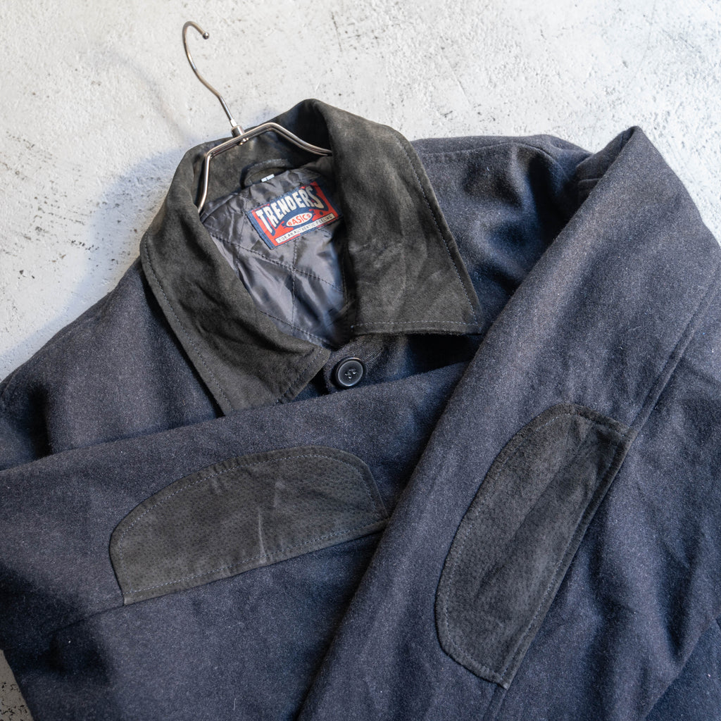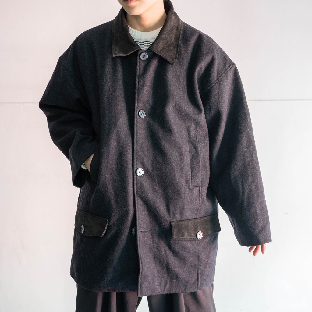 1990s dark gray wool & leather switching half coat
