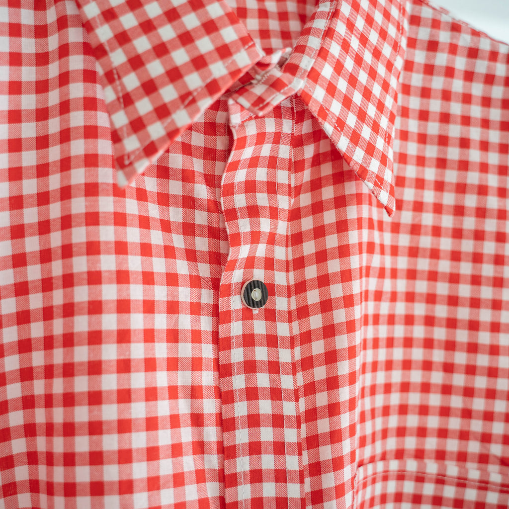装飾強めの個体も多いのですが、こちらはボタンのみチロルの個体で、ボディはシンプルなレッドチェック模様。