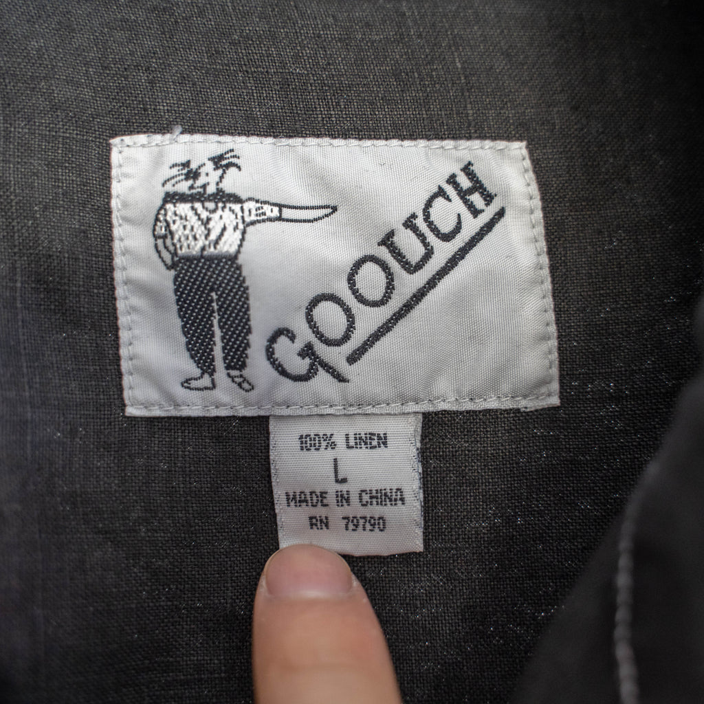 1990s GOOUCH linen 100 strange pocket shirt -black dyed-