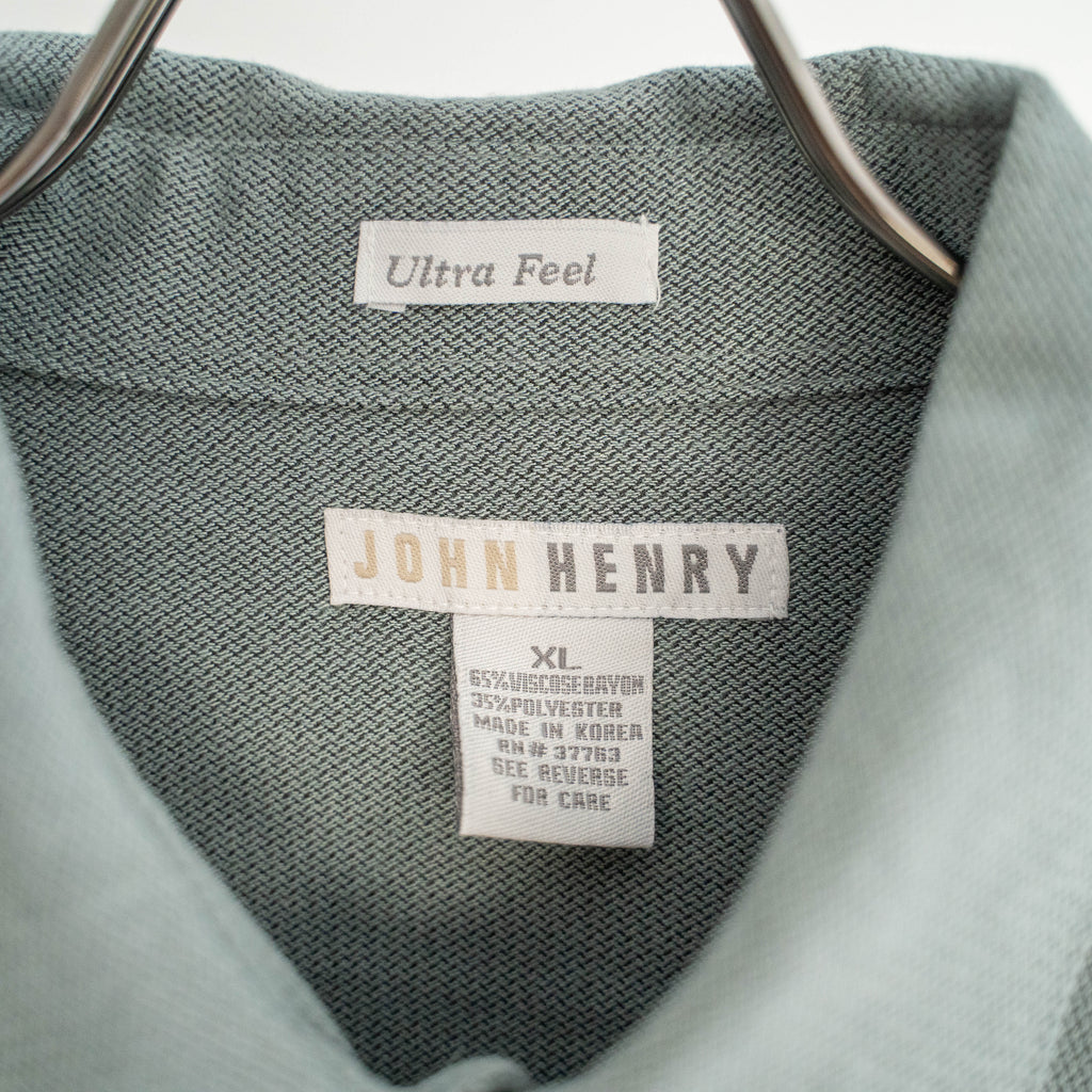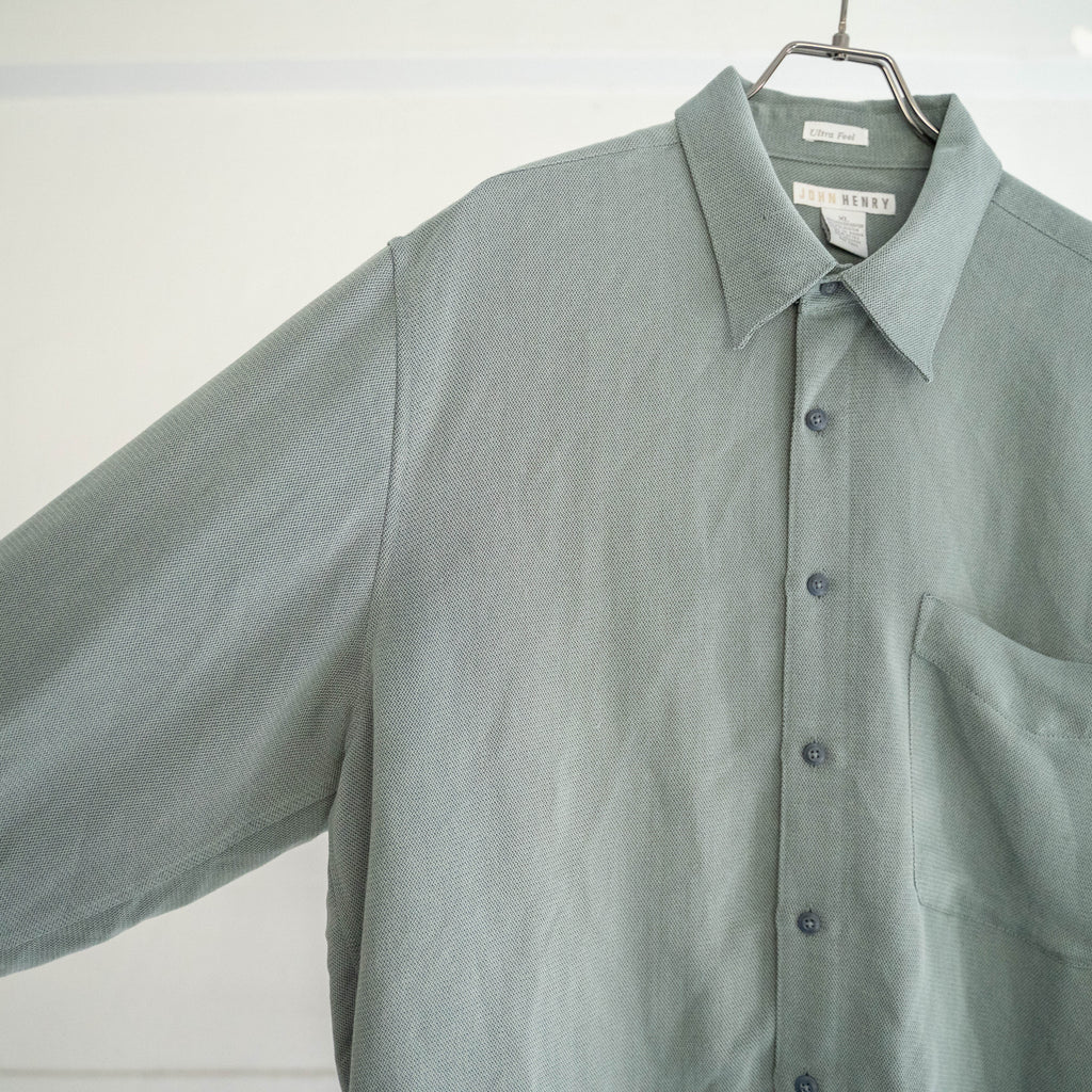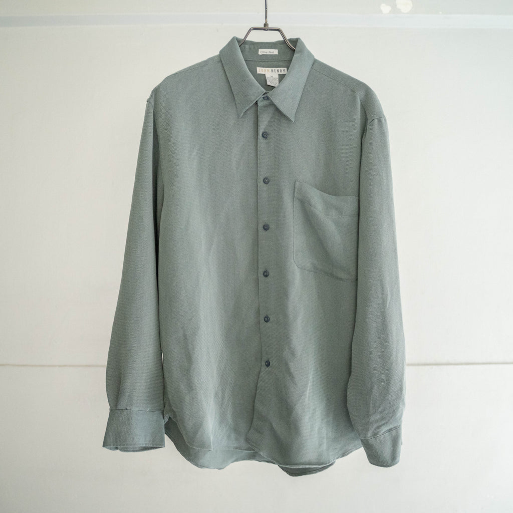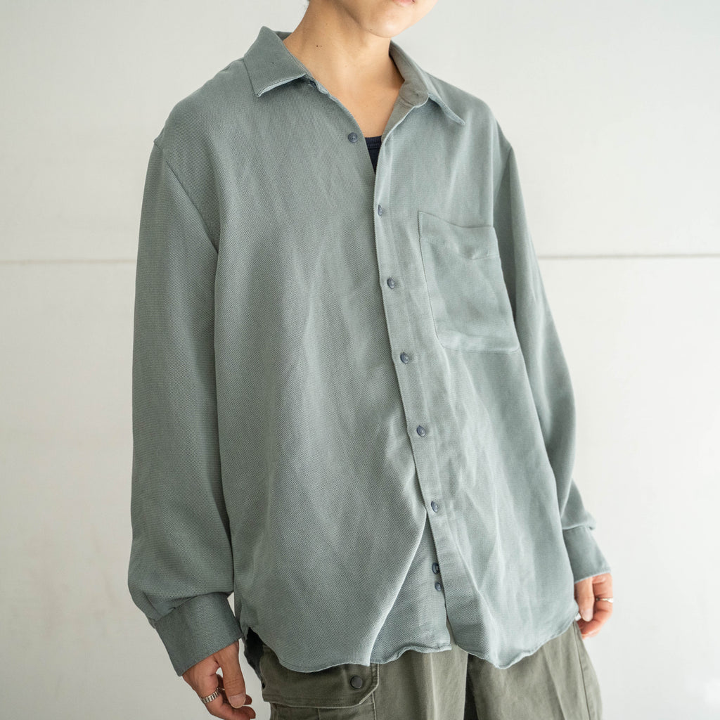 1990s gray green rayon × poly box shirt