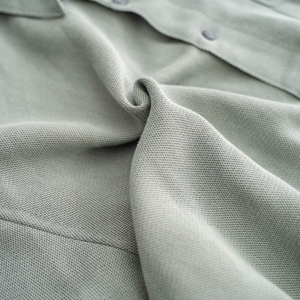 織り目が見えるような生地なので、のっぺりせずにしっかり主役になれるシャツ。