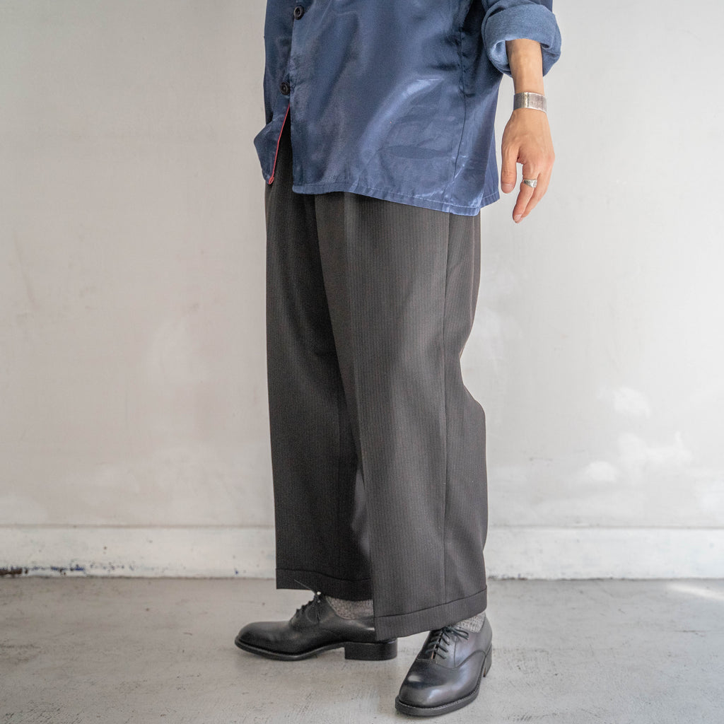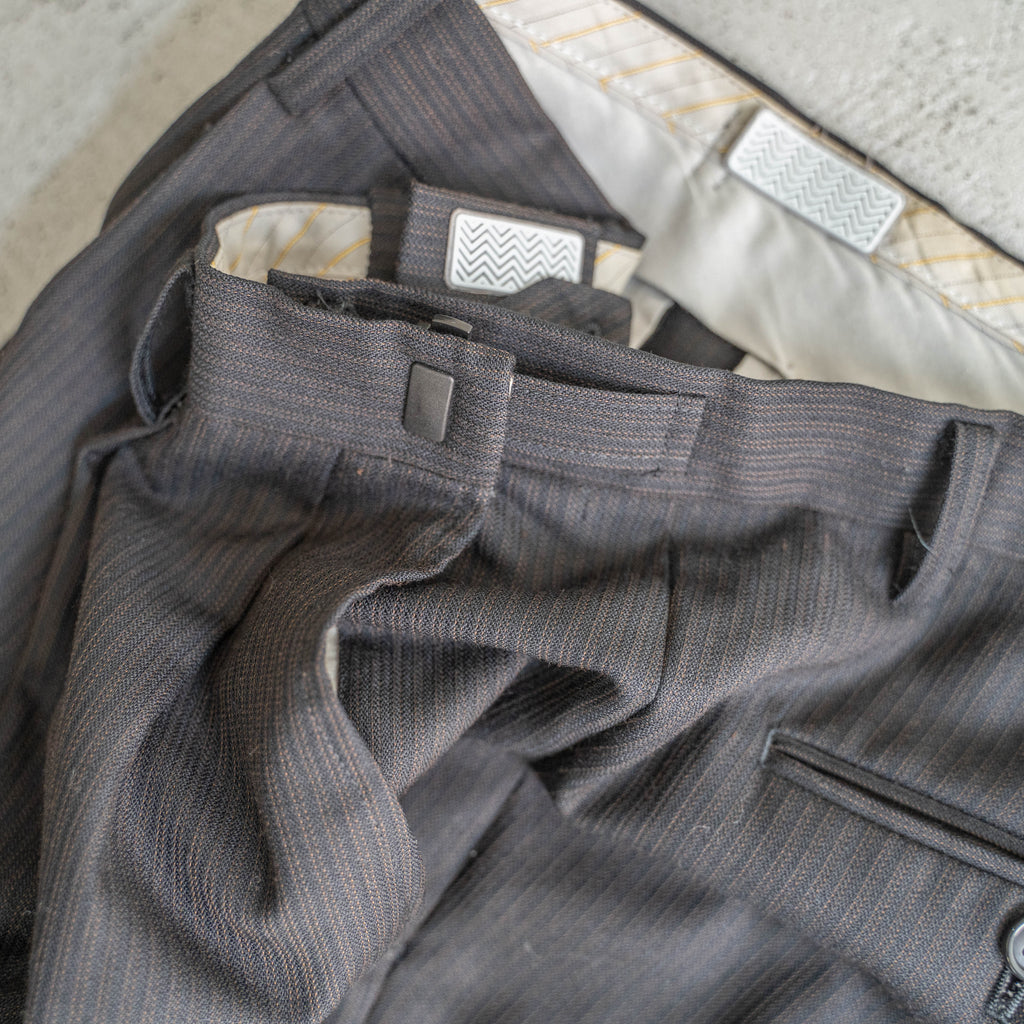 1990s Japan vintage black × gold stripe wool slacks -side adjuster-