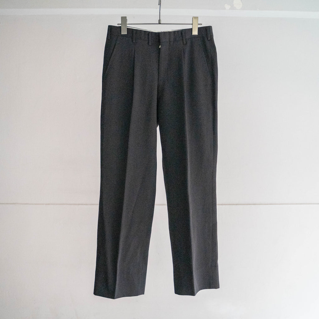 1タック入りながらもややテーパードしている、かなり品良いブラックスラックス。