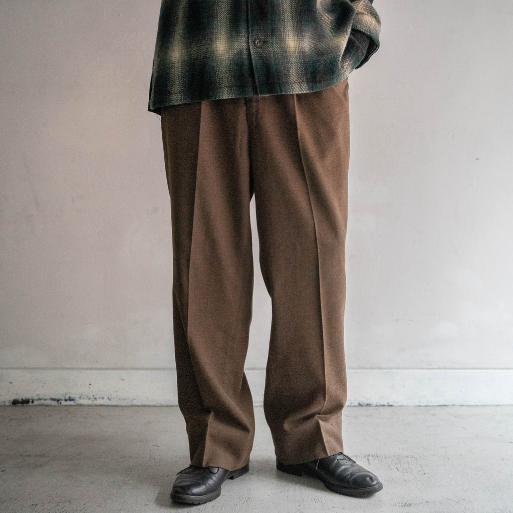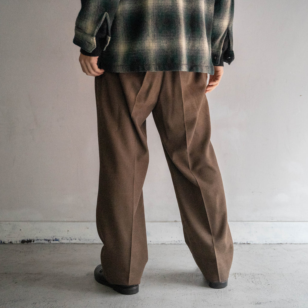 1990s Japan vintage brown poly ×rayon 1 tuck slacks