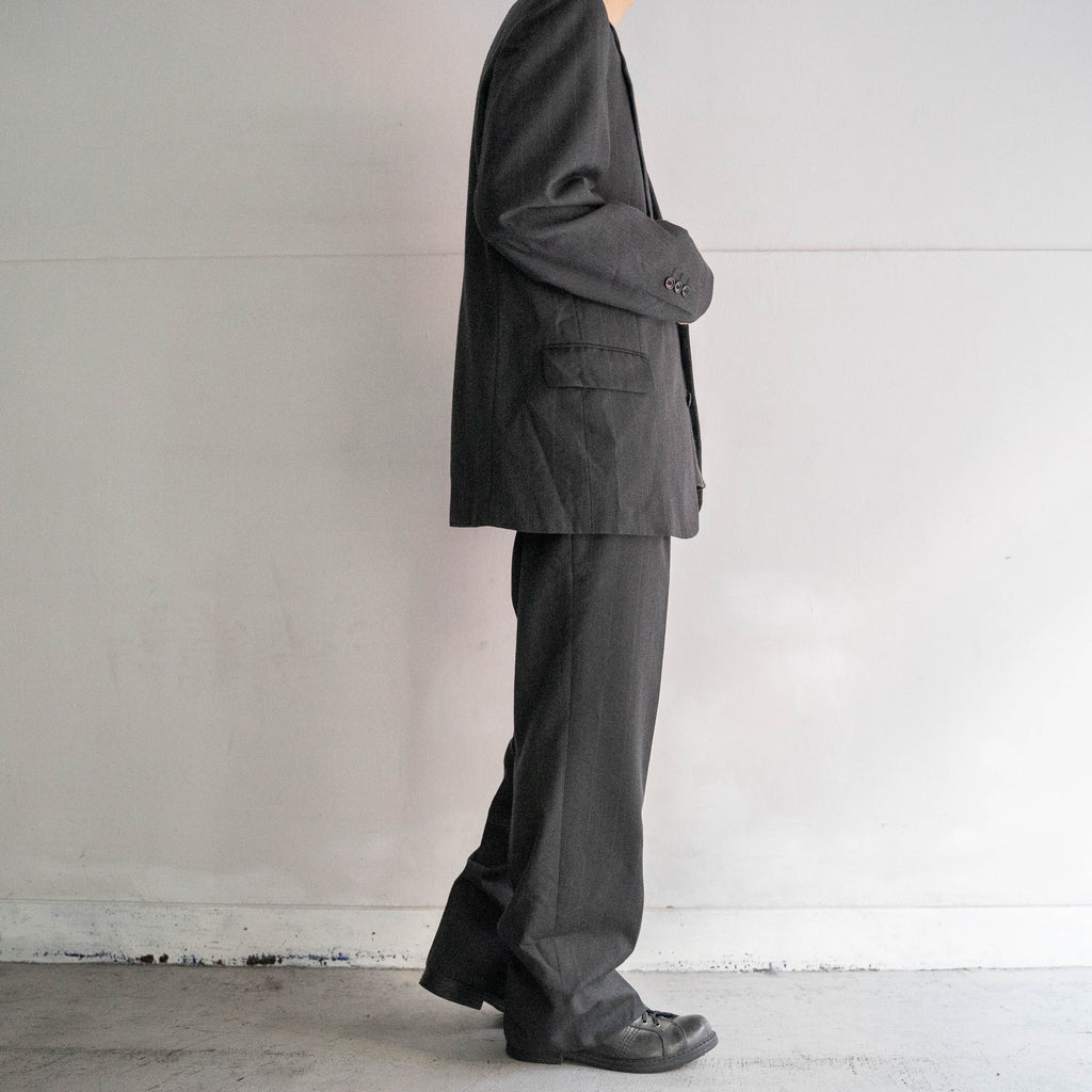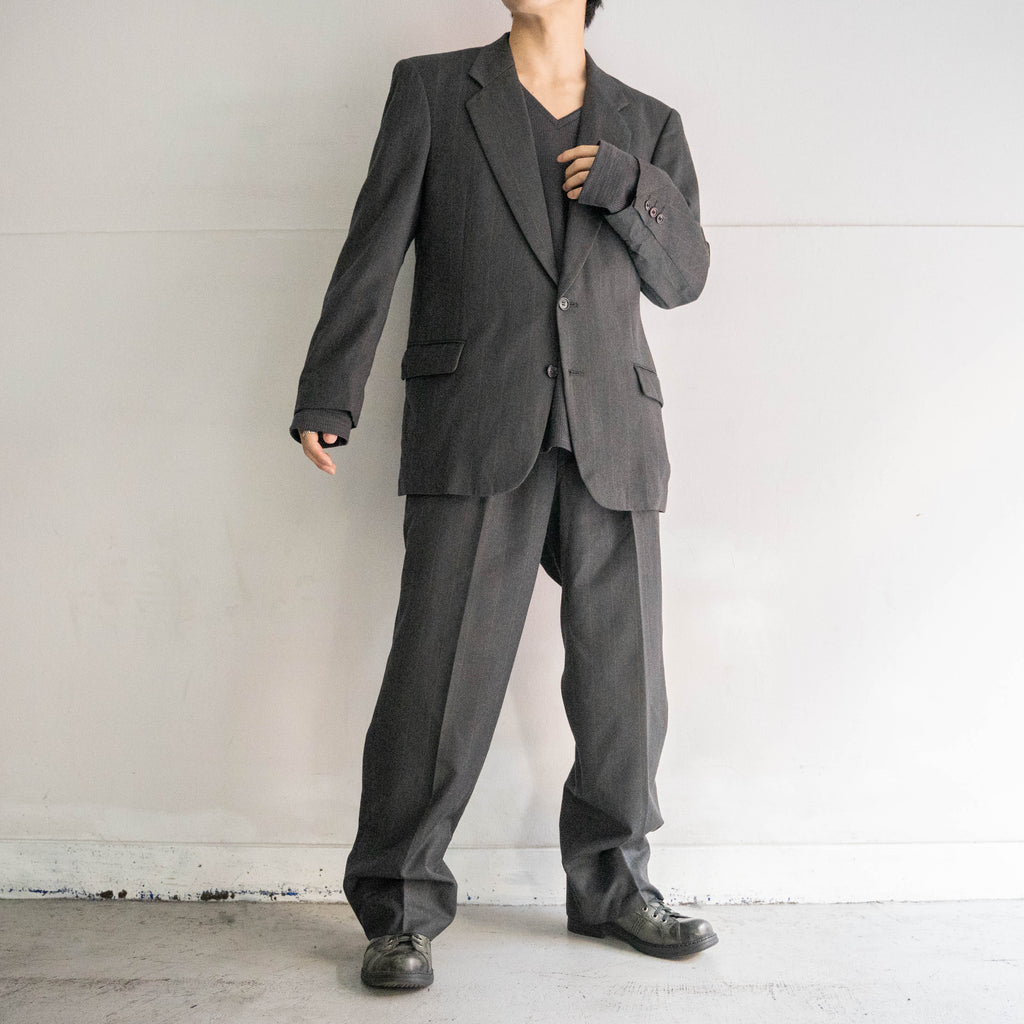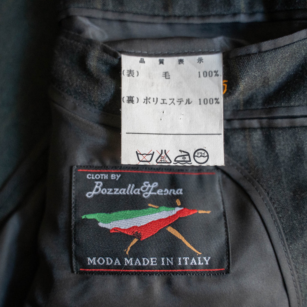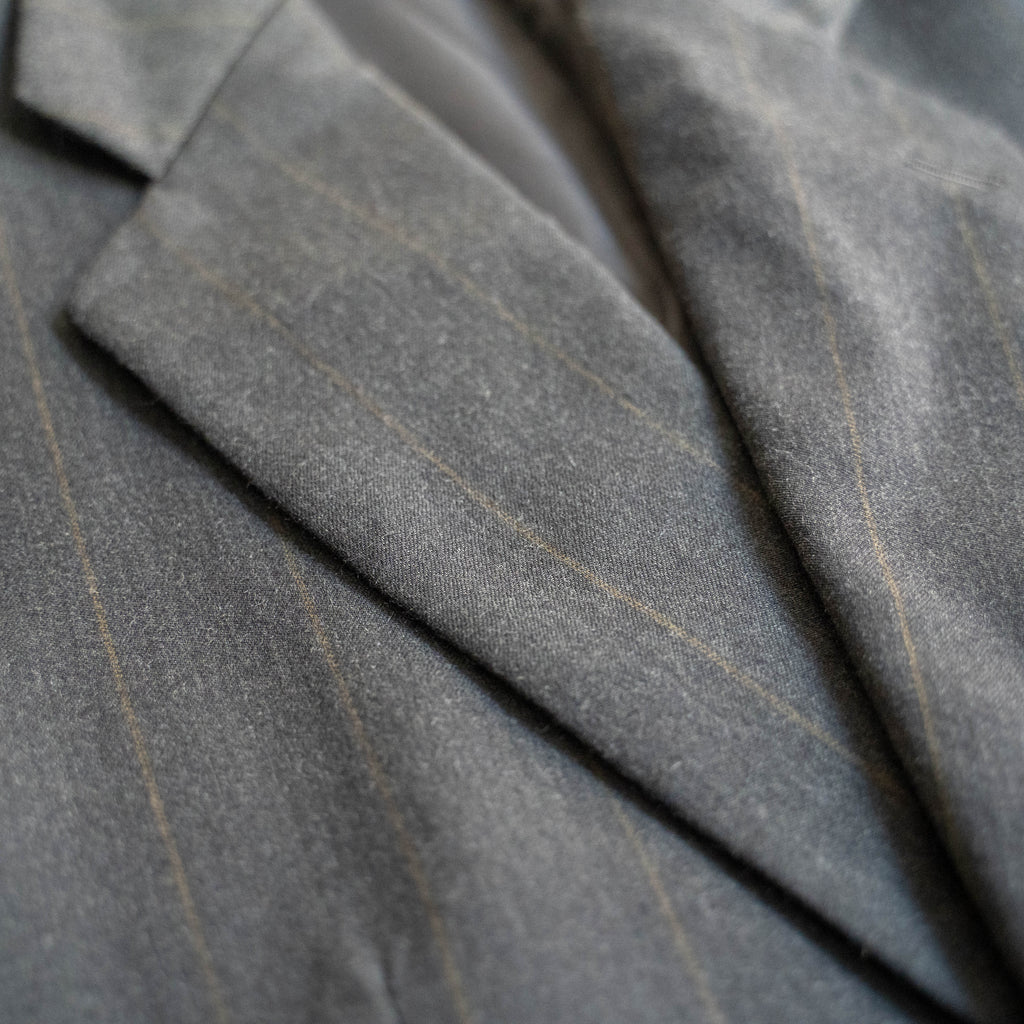 こちらはグレーベースにカーキの細いストライプが入った1着。