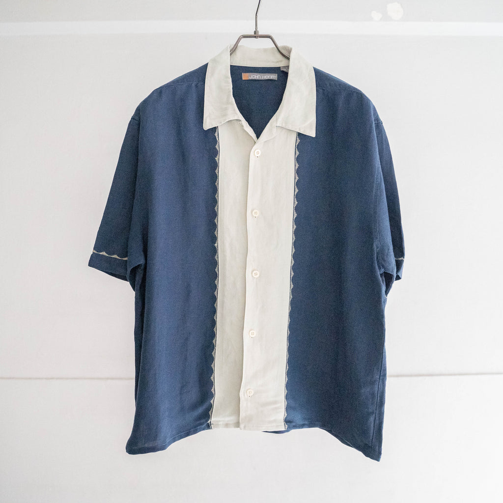 1990s rayon × linen two tone short sleeve shirt -remake-