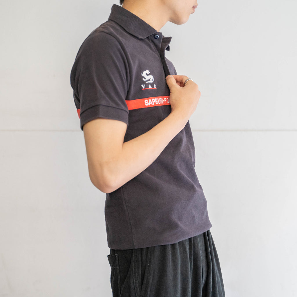 暗めのネイビーに胸元の赤ラインが映えるこちら。