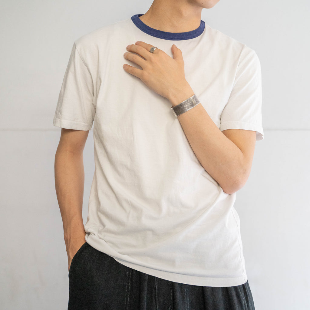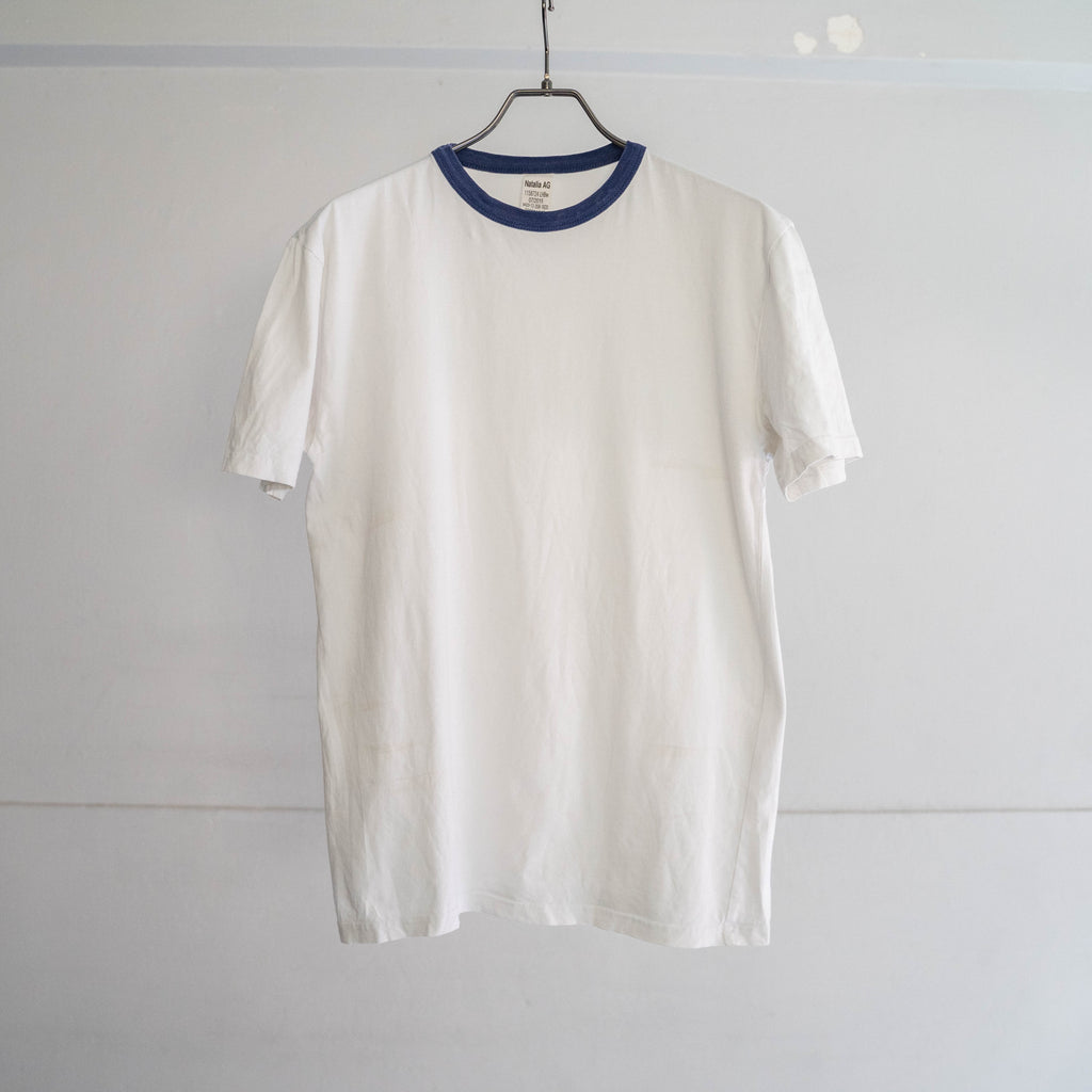 コットン100のホワイトボディにネイビーのリングが程よいアクセント。
