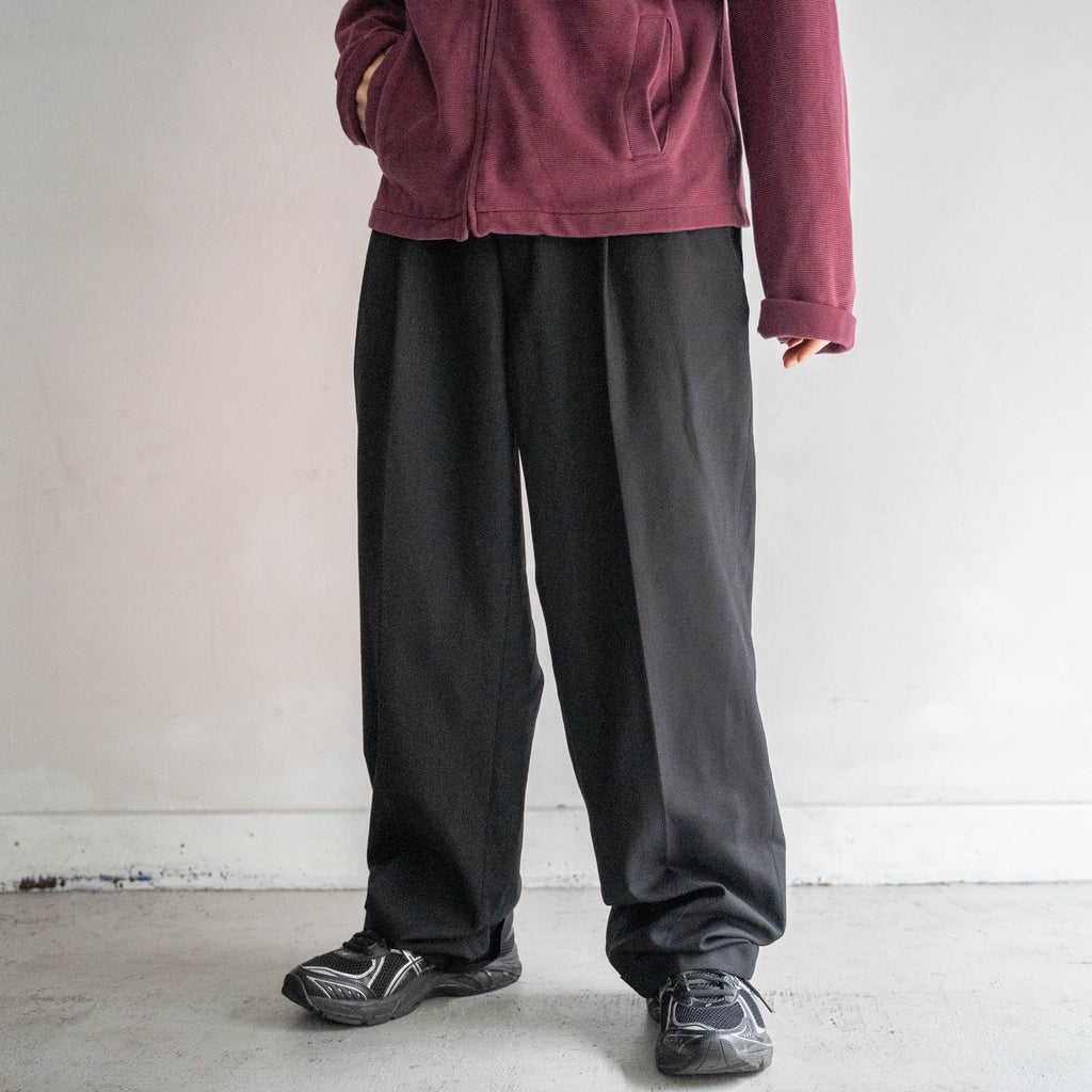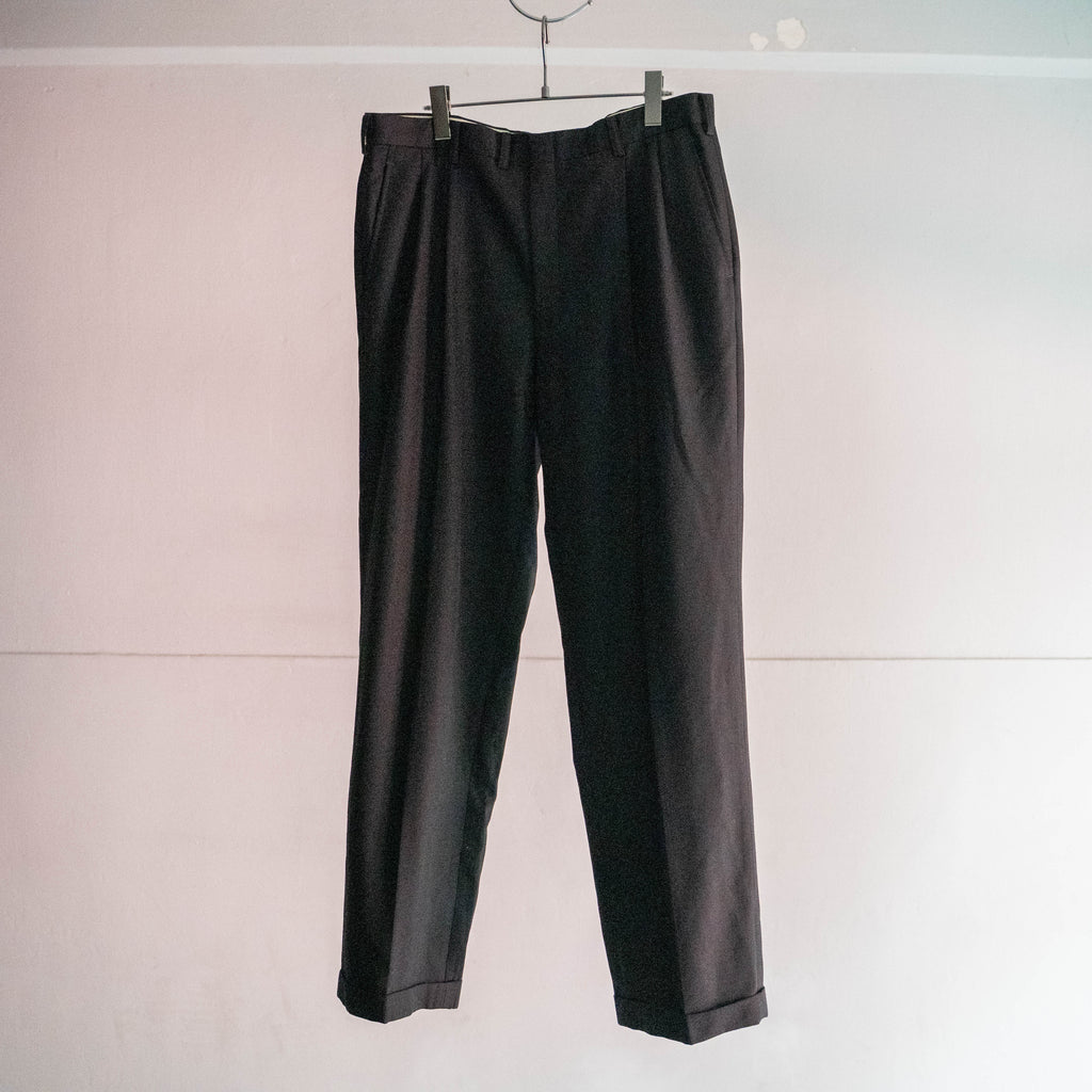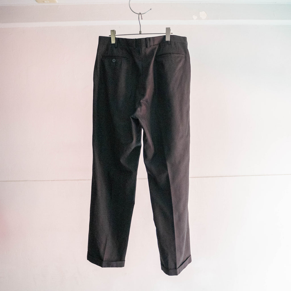 2000s Japan vintage black wool 100 2 tuck slacks -herringbone fabric-