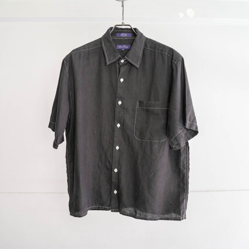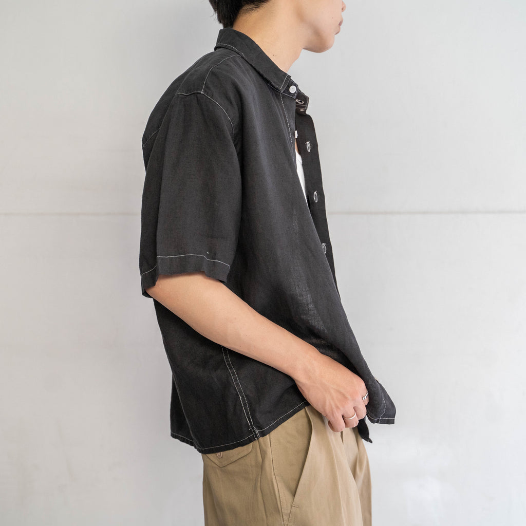 2000s linen 100 short sleeve shirt ‘black dyed’ -remake-
