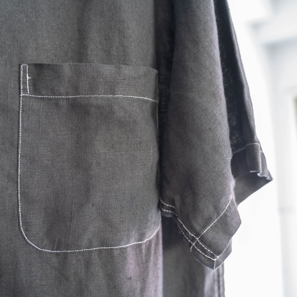 リネンの半袖シャツを黒染めしてブラックカラーに仕上げたこちら。