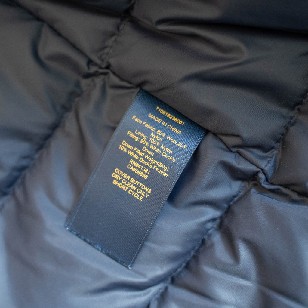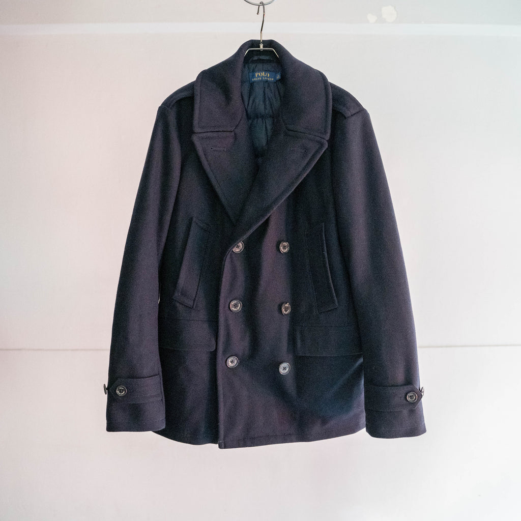 一見質感の良いピーコートなのですが、実はこれ中がダウンになっているんです。