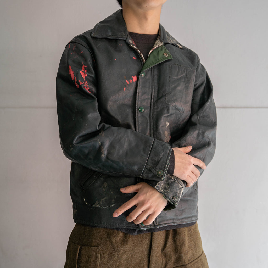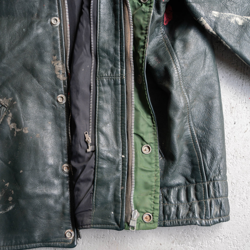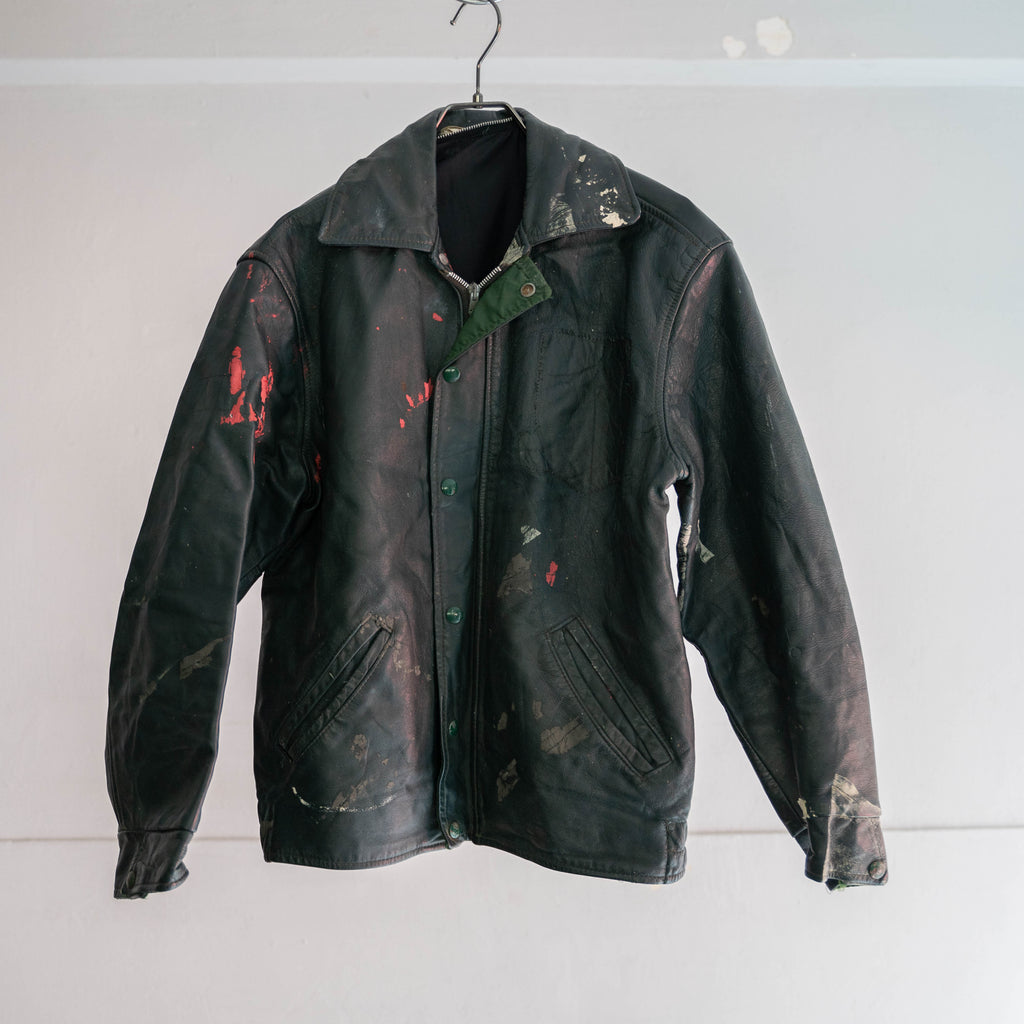 around 1970s Canada gray green leather short jacket -good paint-