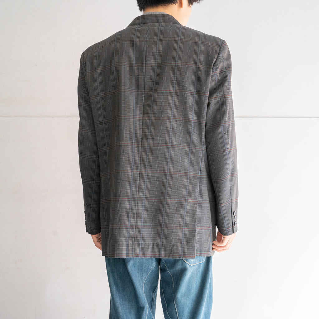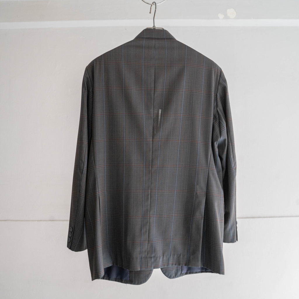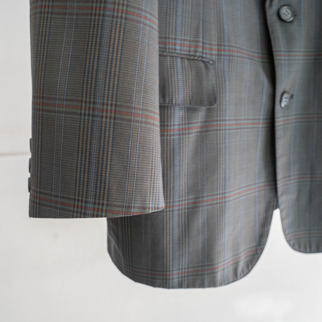 around 1980s Japan vintage blue gray base checked tailored jacket -light weight-