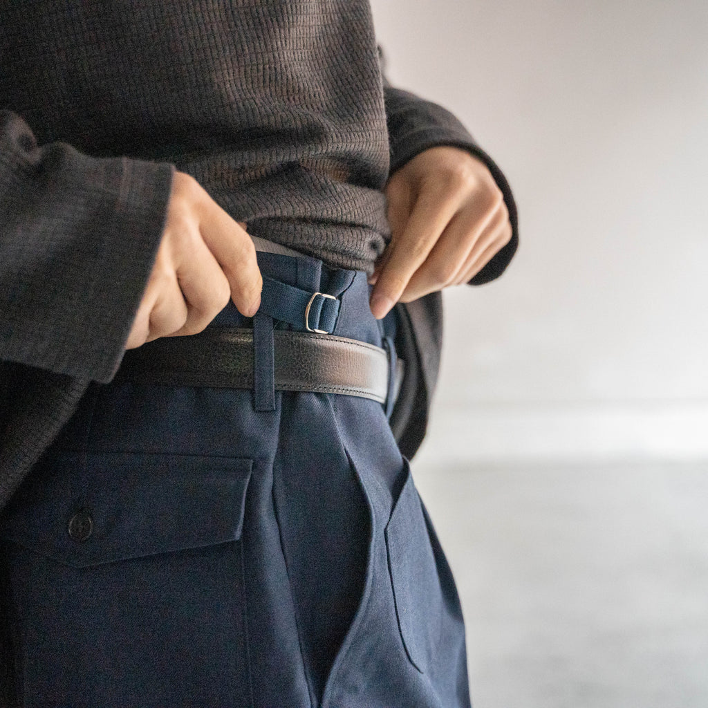 ややさらっとした質感で、しっかり落ち感も綺麗なパンツです。