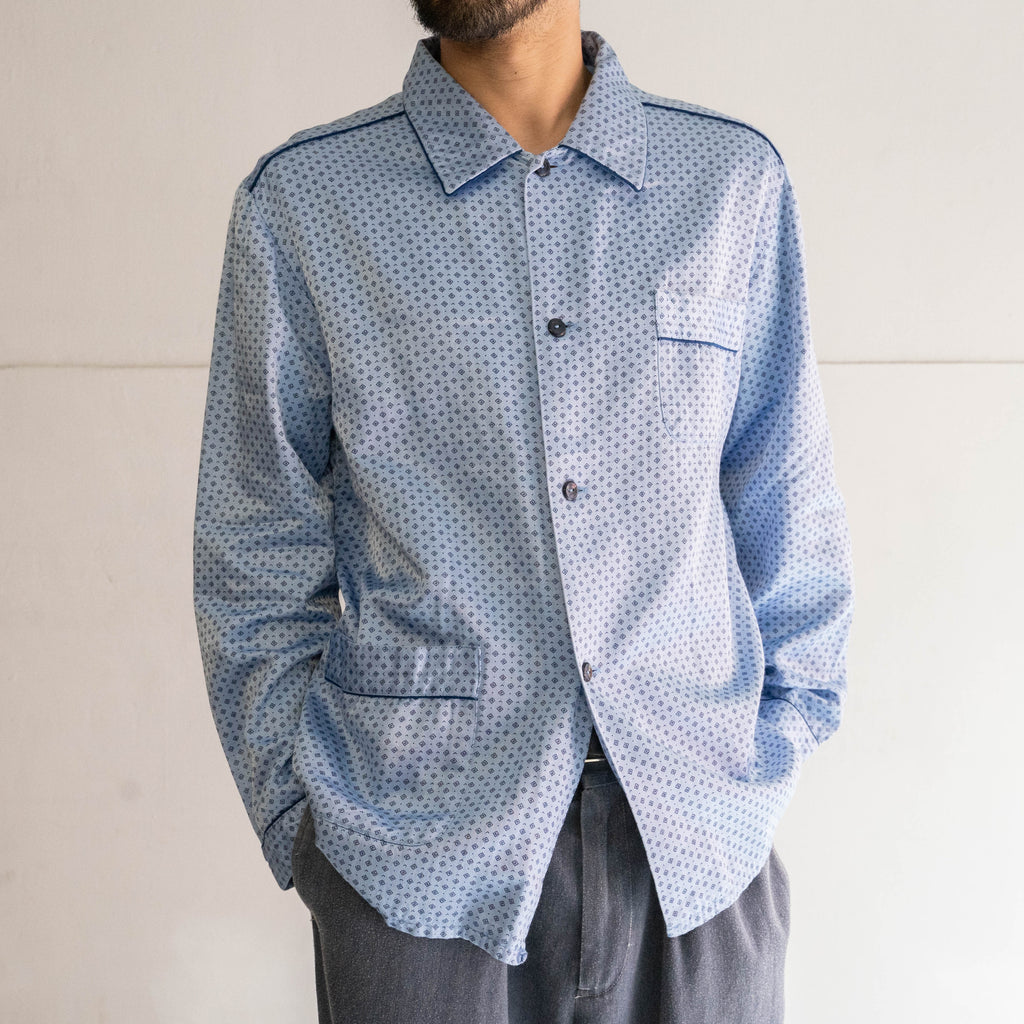 around 1990s Europe light blue color all over pattern pajama shirt