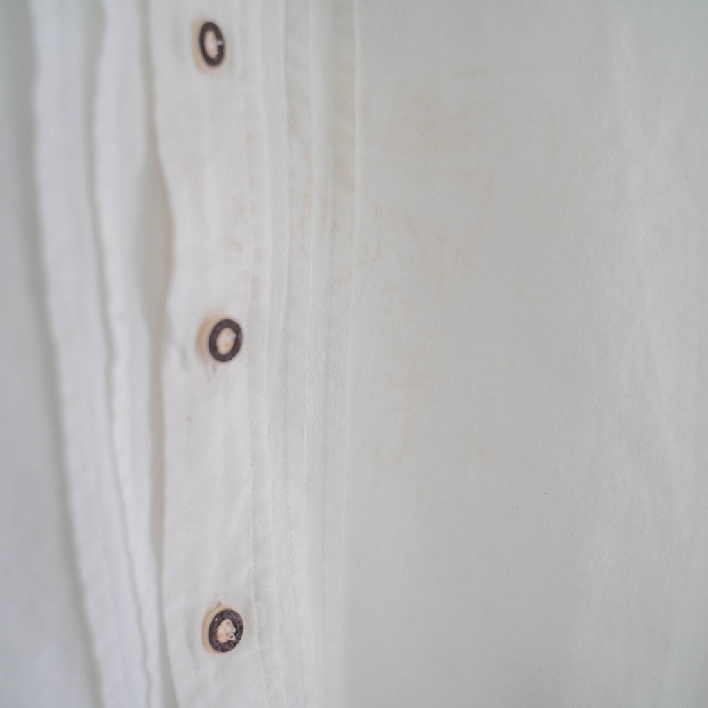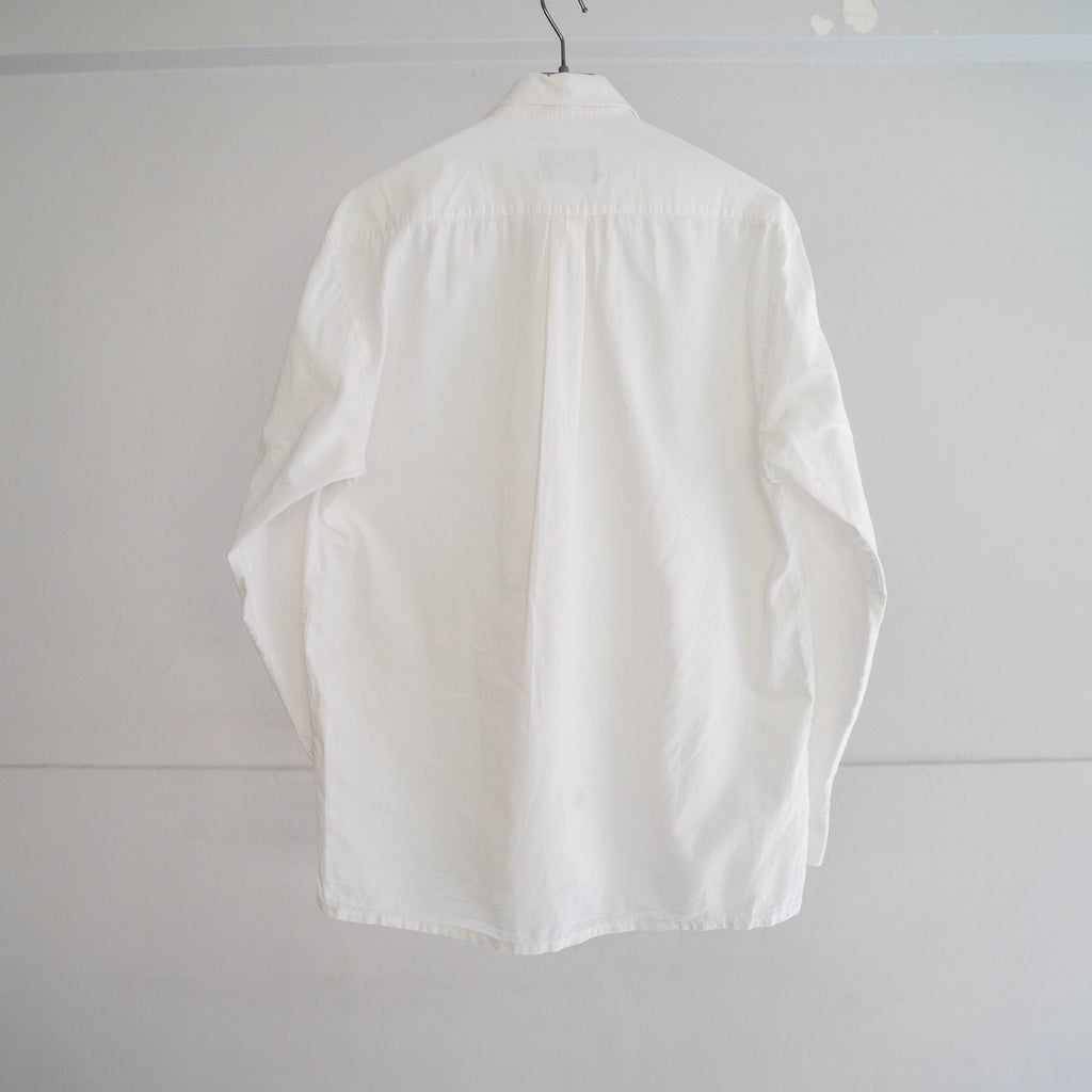 ドレス系の白シャツだとモロ”ビジネス感”が出てしまいますが、生地はカジュアルなのでそういった心配もなくカジュアルに使って頂けます。